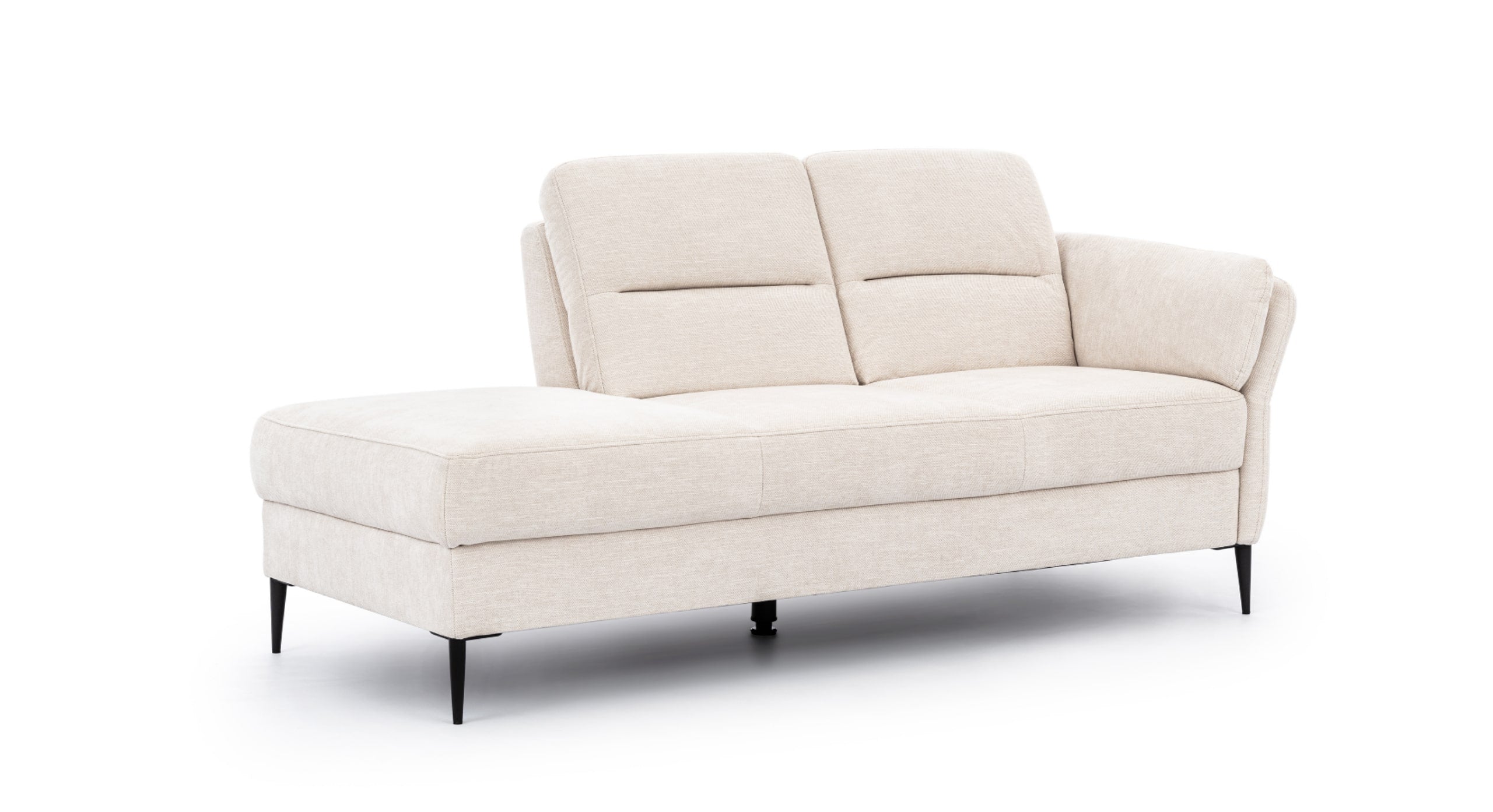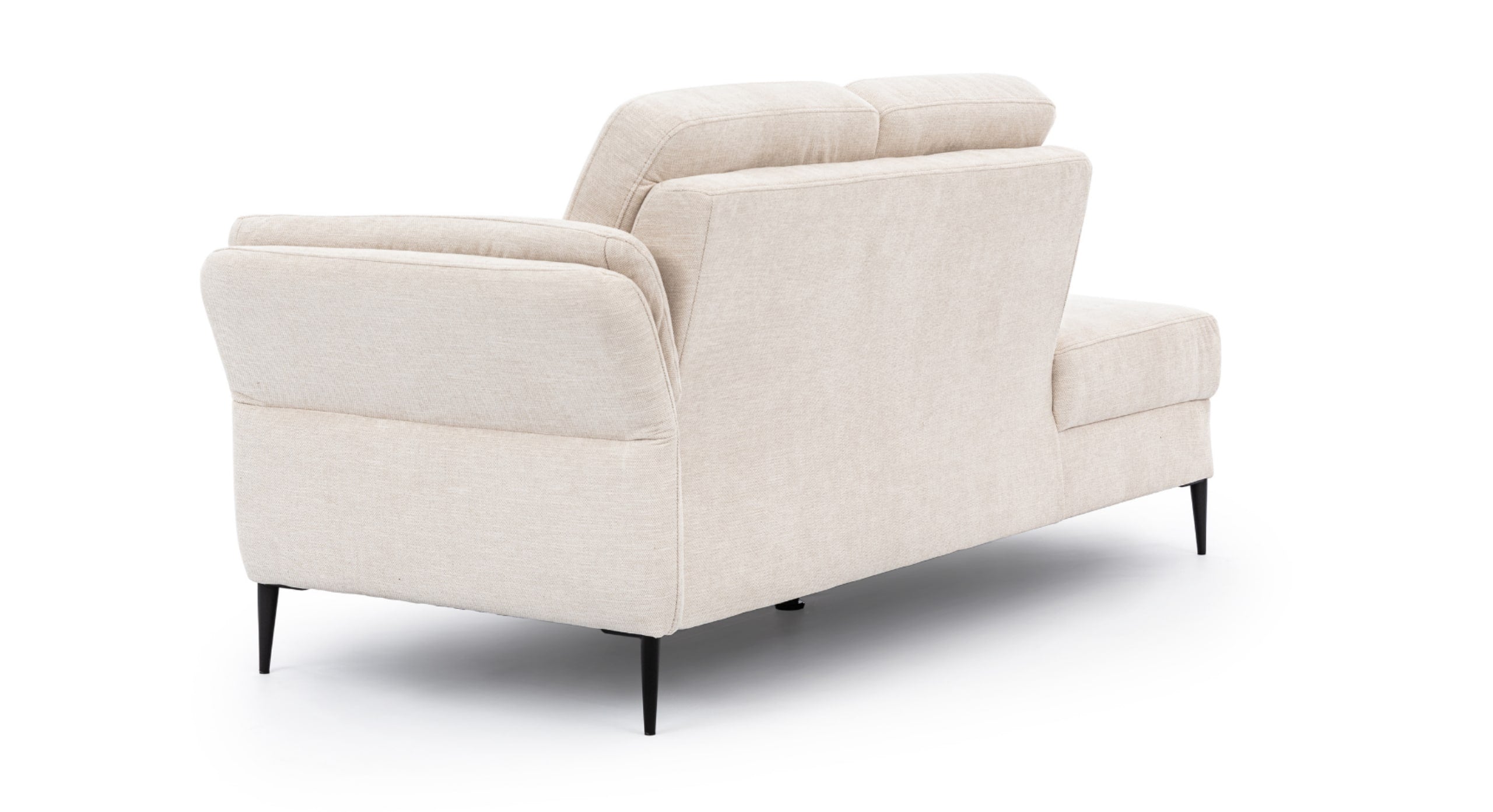 De 2-zitsbank / chaise longue Peace combineert comfort en elegantie in een uniek design. De bank bestaat uit een royale 2-zits en een compact eilandje, waardoor het geheel doet denken aan een losstaande chaise longue. Met zijn zachte bekleding straalt de Peace warmte en verfijning uit, terwijl de zwarte metalen spitse poten een modern en strak accent toevoegen. De wijd uitlopende verstelbare armleuningen en de subtiele naad in het midden van de rugleuning geven deze bank een stijlvol en onderscheidend karakter. Verkrijgbaar in diverse stoffen en kleuren, is de Peace een eigentijdse en comfortabele toevoeging aan elke woonkamer.