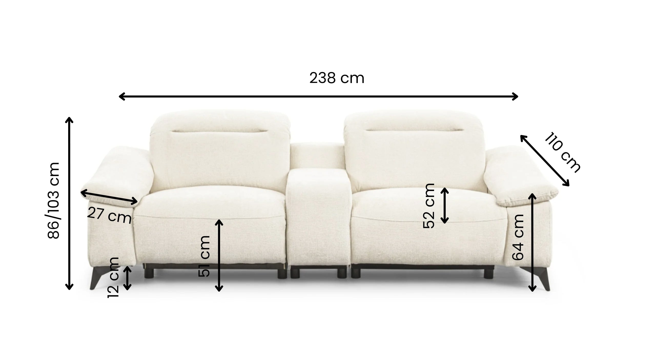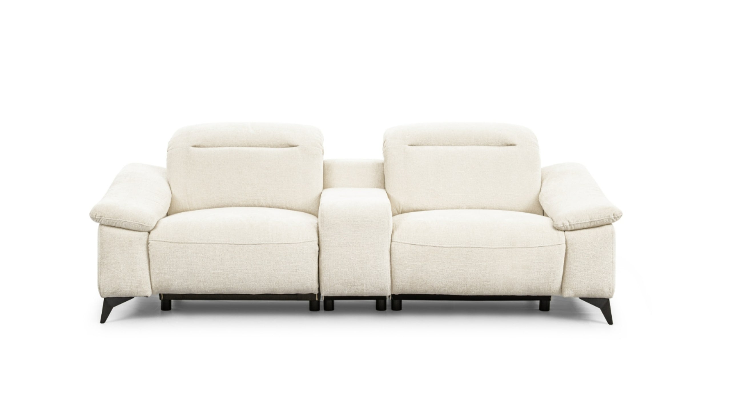 De 2-Zitsbank Home met Relaxfunctie en Middenstuk biedt een perfecte mix van stijl, comfort en functionaliteit. Beide zittingen zijn uitgerust met een elektrisch verstelbare relaxfunctie, waarmee je eenvoudig je zitpositie kunt aanpassen voor optimaal comfort. De verstelbare hoofdsteunen zorgen voor extra ondersteuning, ideaal voor lange ontspanningsmomenten. Het middenstuk/armleuning is voorzien van een handig opbergvak, waarmee je je spullen eenvoudig kunt opbergen en je ruimte netjes houdt. De zwarte puntige metalen poten geven de bank een moderne uitstraling, terwijl de horizontale naad in de rugleuning een verfijnd detail toevoegt aan het design. Deze 2-zitsbank is de perfecte keuze voor wie luxe, praktische functies en een strak design wil combineren in één meubelstuk.