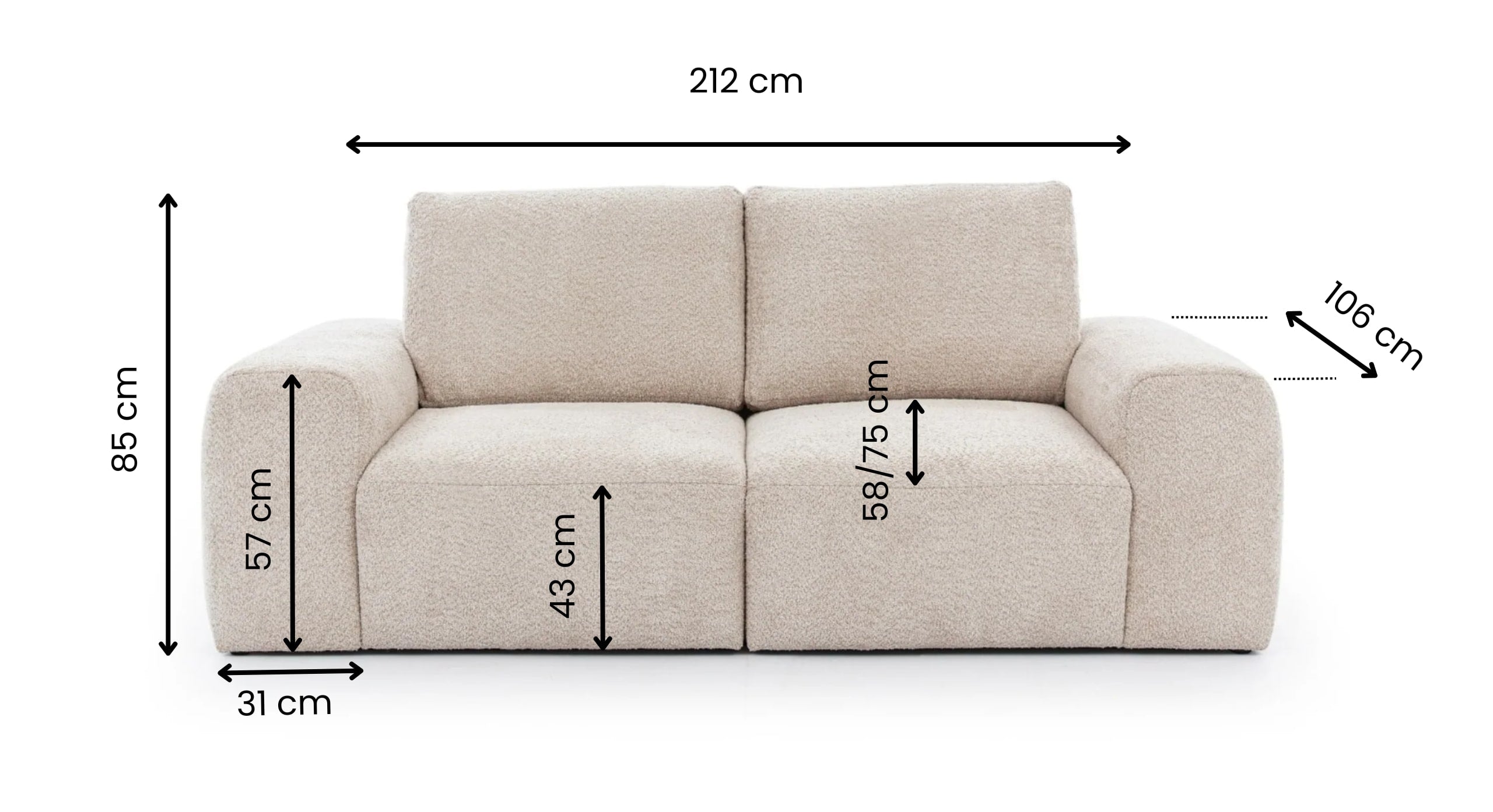 2-Zitsbank Snug biedt de perfecte combinatie van modern design en comfort. Met zijn brede, rondlopende armleuningen en losse rugkussens heeft deze bank een uitnodigende uitstraling die zorgt voor optimaal zitcomfort. De vaste zitkussens bieden stevige ondersteuning, terwijl de lage pootjes de bank een frisse, eigentijdse look geven. Gestoffeerd in een zachte bouclé- of teddy-stof is de 2-zitsbank Snug niet alleen een luxe zitplek, maar ook een stijlvolle toevoeging aan iedere woonkamer. Bovendien is de bank verkrijgbaar in verschillende trendy stoffen, zodat je hem kunt afstemmen op jouw interieur.