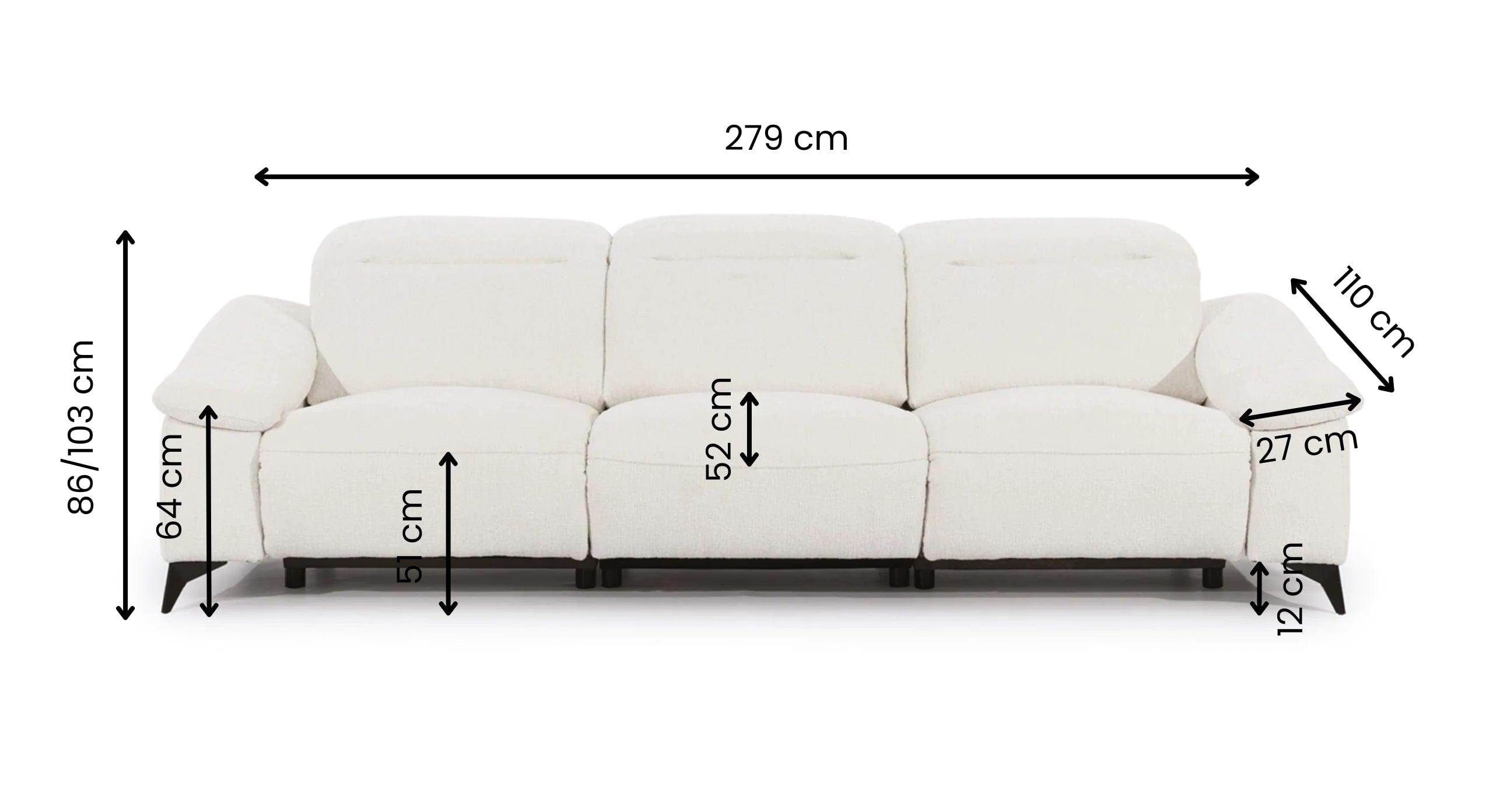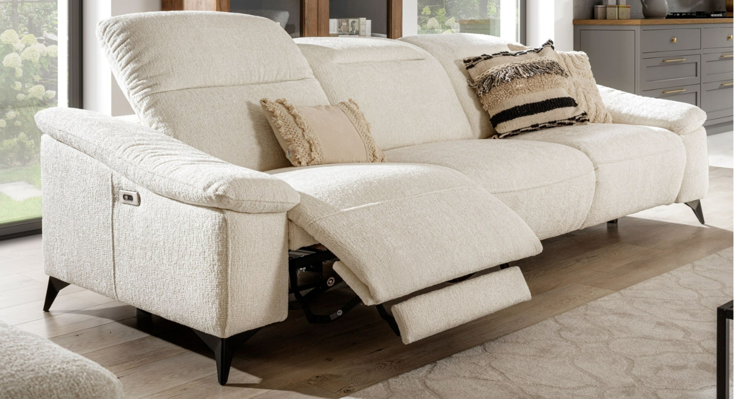 De 3-Zitsbank Home met Relaxfunctie biedt de perfecte mix van comfort, stijl en functionaliteit. Deze bank is uitgerust met een elektrisch verstelbare relaxfunctie in de zittingen met armleuning, waardoor je de perfecte zitpositie kunt vinden voor optimaal comfort en ontspanning. De verstelbare hoofdsteunen bieden extra ondersteuning voor je nek en hoofd, ideaal voor lange momenten van rust. Het strakke en moderne ontwerp wordt versterkt door zwarte puntige metalen poten die een eigentijdse uitstraling geven. De horizontale naad in de rugleuning voegt een verfijnd detail toe, waardoor de bank een luxe uitstraling heeft. Deze 3-zitsbank is de ideale keuze voor wie luxe, functionaliteit en een modern design wil combineren in één meubelstuk. Perfect voor elk interieur dat vraagt om comfort en stijl.