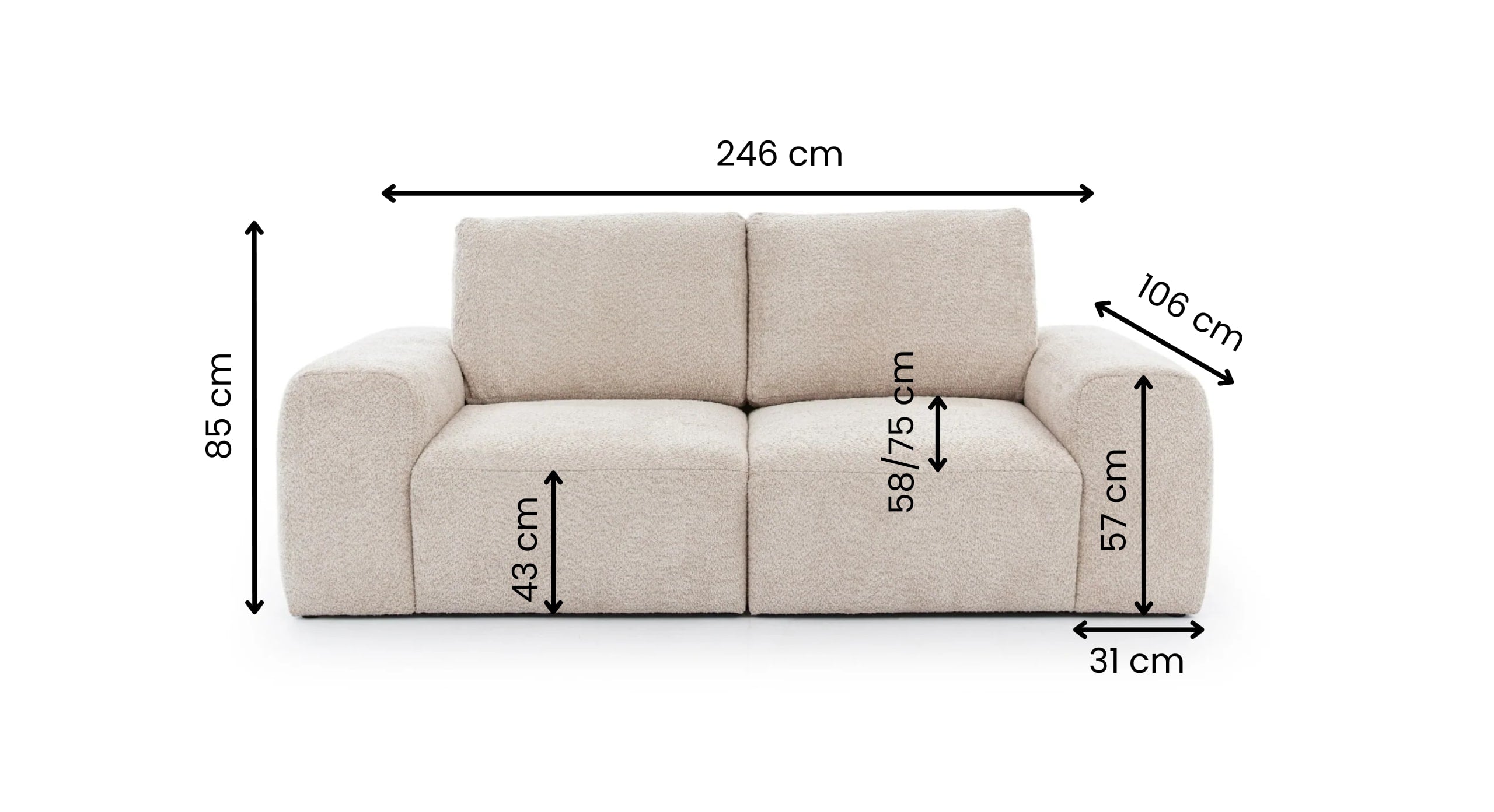 3-Zitsbank Snug biedt de perfecte combinatie van modern design en comfort. Met zijn brede, rondlopende armleuningen en losse rugkussens heeft deze bank een uitnodigende uitstraling die zorgt voor optimaal zitcomfort. De vaste zitkussens bieden stevige ondersteuning, terwijl de lage pootjes de bank een frisse, eigentijdse look geven. Gestoffeerd in een zachte bouclé- of teddy-stof is de 3-zitsbank Snug niet alleen een luxe zitplek, maar ook een stijlvolle toevoeging aan iedere woonkamer. Bovendien is de bank verkrijgbaar in verschillende trendy stoffen, zodat je hem kunt afstemmen op jouw interieur. De bank bestaat uit een 1,5-zits arm links en een 1,5-zits arm rechts.