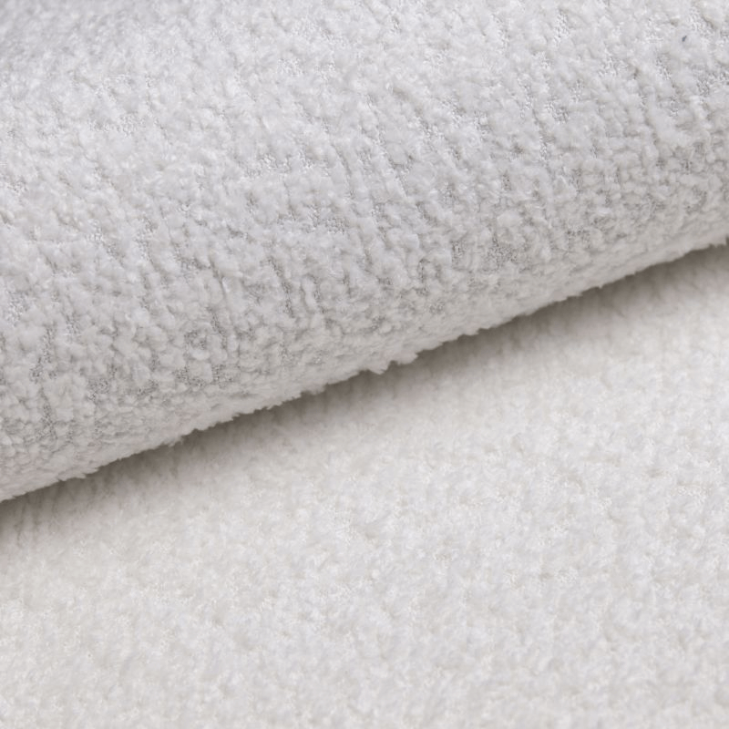 De Abriamo 04 Wit is een verfijnde bouclé stof die de luxueuze uitstraling van teddy stof combineert met een stralende, pure witte kleur. Deze stof biedt een rijke, volumineuze textuur die zowel visueel als voelbaar indruk maakt, perfect voor het toevoegen van een elegante toets aan je interieur. Met een grammage van 540 g/m² is de Abriamo 04 Wit stevig en duurzaam, ideaal voor meubelstukken die zowel stijl als comfort moeten bieden. Gemaakt van 100% polyester, heeft de stof een Martindale score van 45.000, wat betekent dat hij goed bestand is tegen intensief gebruik. De kleurvastheid van 6 zorgt ervoor dat de stof zijn frisse witte kleur behoudt, zelfs na langdurig gebruik. Bestel een stofstaal van de Abriamo 04 Wit en ontdek de luxe uitstraling en de hoge kwaliteit van deze bouclé stof zelf.