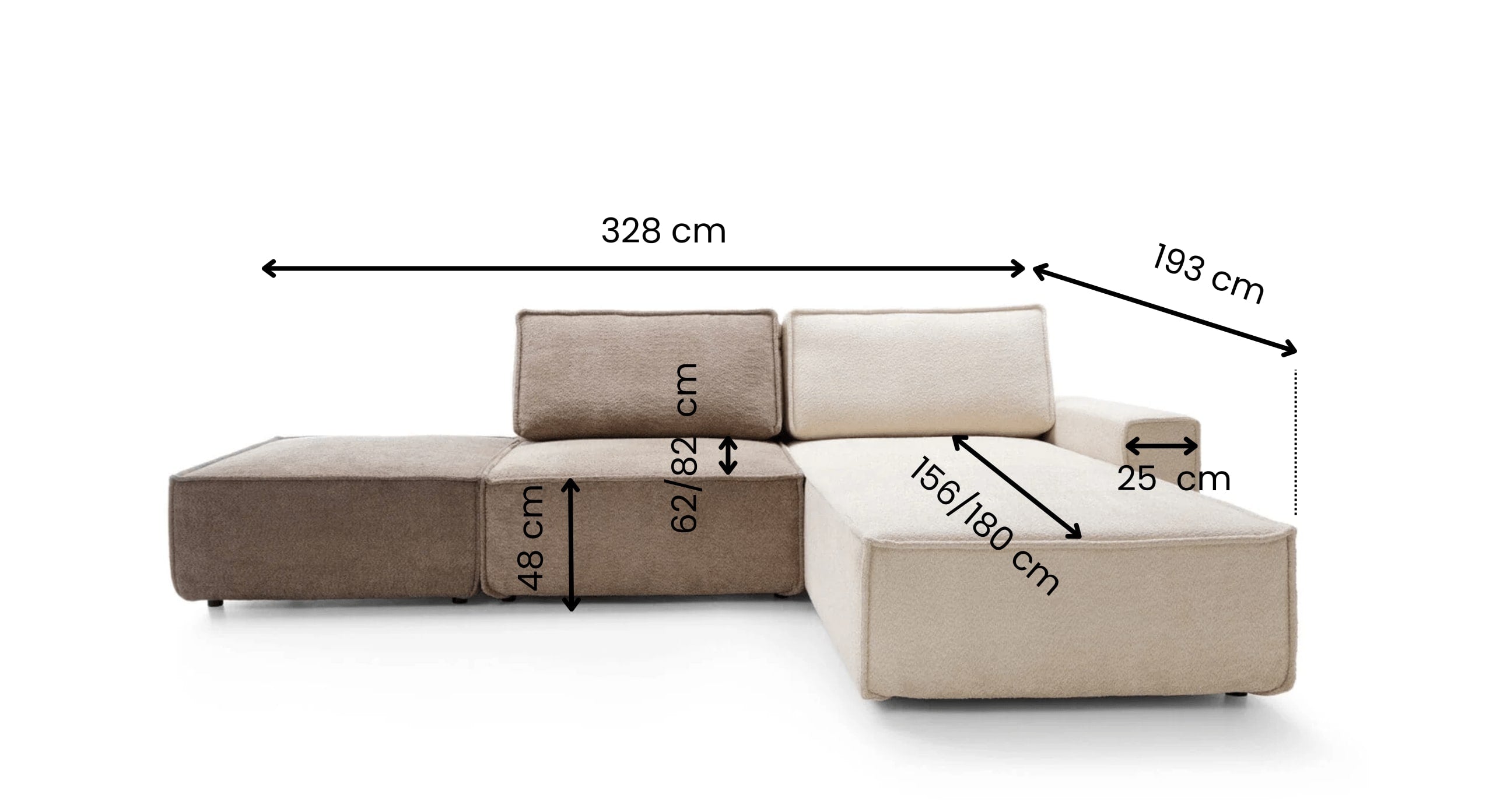 | Zitdiepte | 62/82 cm (zitvlak) & 156/180 cm (chaise lounge) |