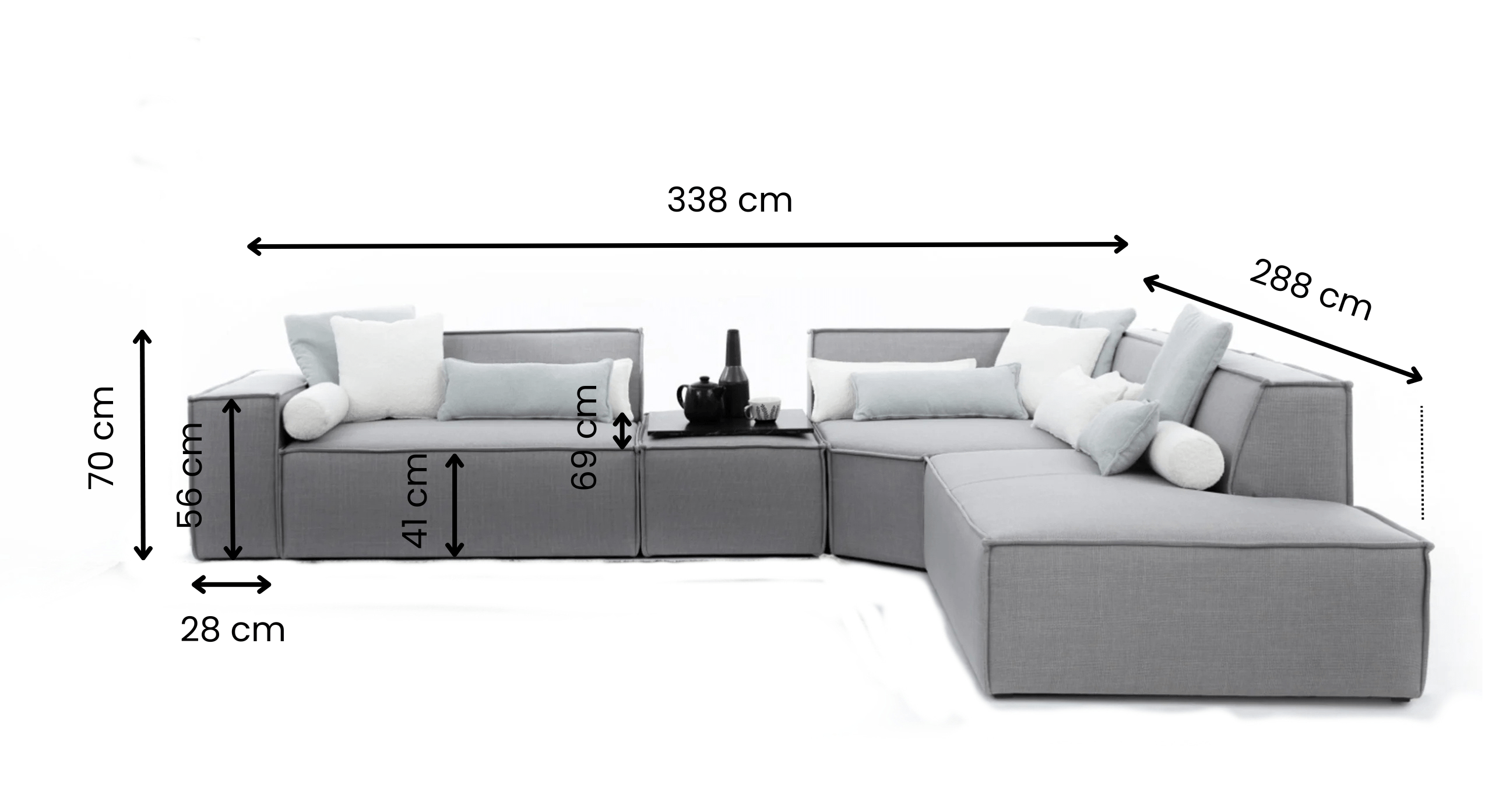Maak kennis met de grote hoekbank Sense met hoek en eiland rechts, de perfecte keuze voor een stijlvolle en gezellige woonkamer. Met zijn moderne uitstraling en lage poten voegt deze bank een eigentijdse flair toe aan je interieur, terwijl de scherpe prijsstelling ervoor zorgt dat je geen fortuin hoeft uit te geven voor comfort. De hoekbank is ontworpen met een mooie bies die een verfijnde touch toevoegt, en de vaste zit- en rugkussens bieden optimale ondersteuning voor langdurig zitcomfort. Een uniek kenmerk van deze bank is het gedeelte zonder rugleuning, dat zorgt voor een bijzondere look. Met de hoek en eiland die zich voorstaand rechts bevinden, creëer je een uitnodigende sfeer voor ontspanning en gezelligheid. Of je nu een filmavond hebt of vrienden ontvangt, de grote hoekbank Sense is de ideale plek om samen te komen. Geniet van stijl en comfort met deze prachtige hoekbank die perfect aansluit bij jouw woonstijl!