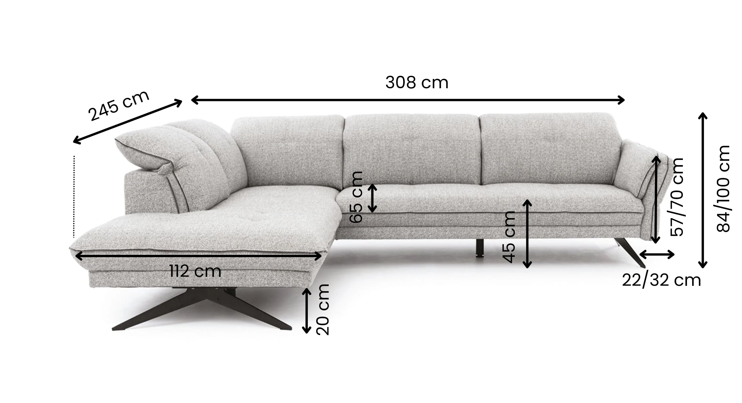 De Hoekbank Charm met hoek en eiland links biedt de perfecte balans tussen comfort en modern design. Met zijn ruime opstelling en het eiland dat zich voorstaand links bevindt, creëert deze bank een uitnodigende plek om te ontspannen. De bank is voorzien van verstelbare rug- en armleuningen, waardoor je het zitcomfort volledig kunt aanpassen aan jouw voorkeur. Het verfijnde detail van de bies voegt een luxe afwerking toe, terwijl de unieke zwarte poten zorgen voor een moderne, strakke uitstraling. Een stijlvolle toevoeging aan elke woonkamer.