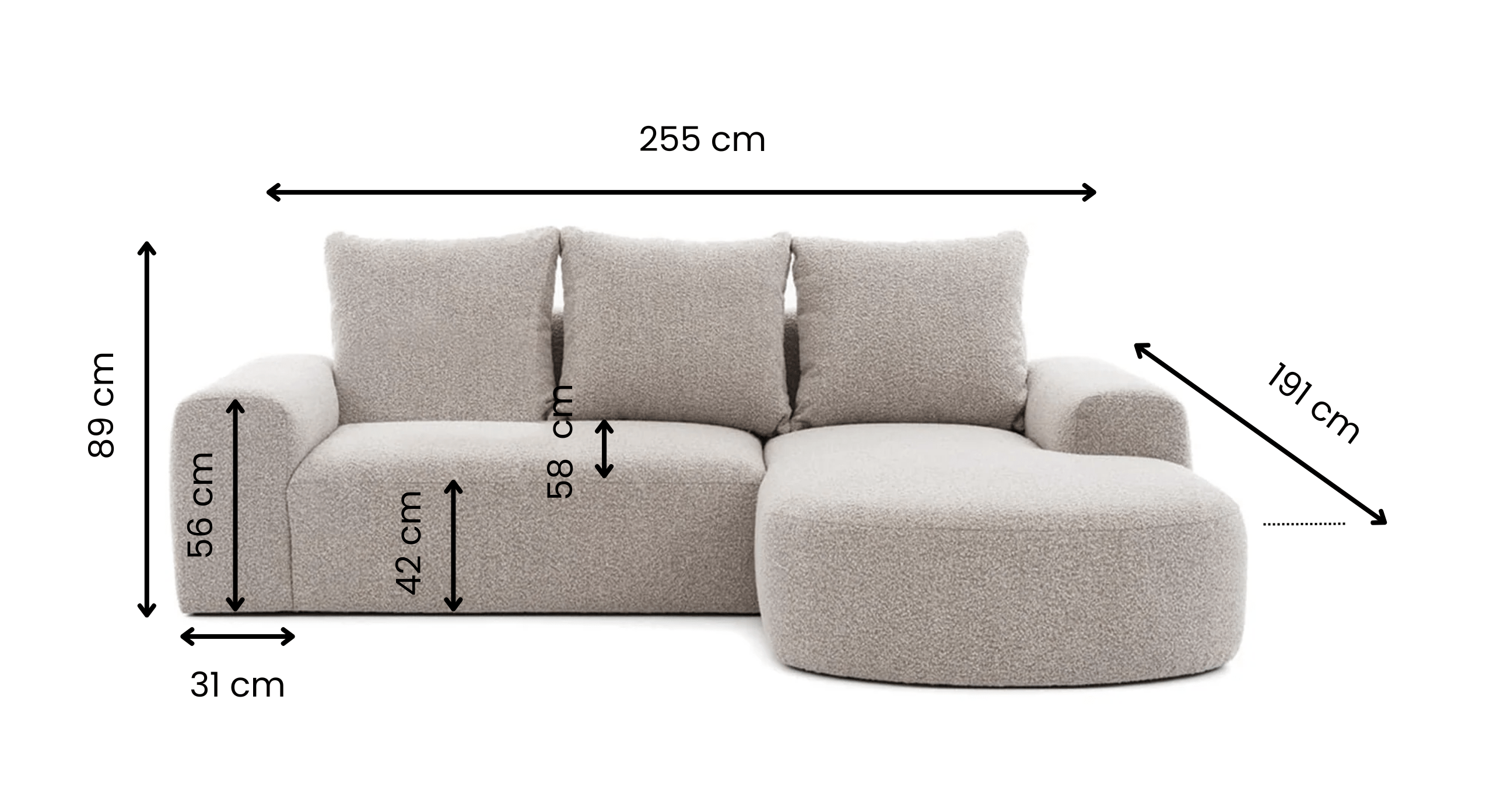 Ontdek de ultieme combinatie van stijl en comfort met onze betaalbare Hoekbank Met Chaise Longue Comfy voorstaand rechts. Deze trendy hoekbank, compleet met losse rugkussens en zonder poten voor een zwevend effect, biedt de perfecte plek om te ontspannen na een lange dag. De hoekbank is voorzien van een mooie bouclé stof. Of je nu gasten ontvangt of gewoon wilt relaxen, deze hoekbank past zich moeiteloos aan jouw behoeften aan, en dat alles voor een betaalbare prijs.