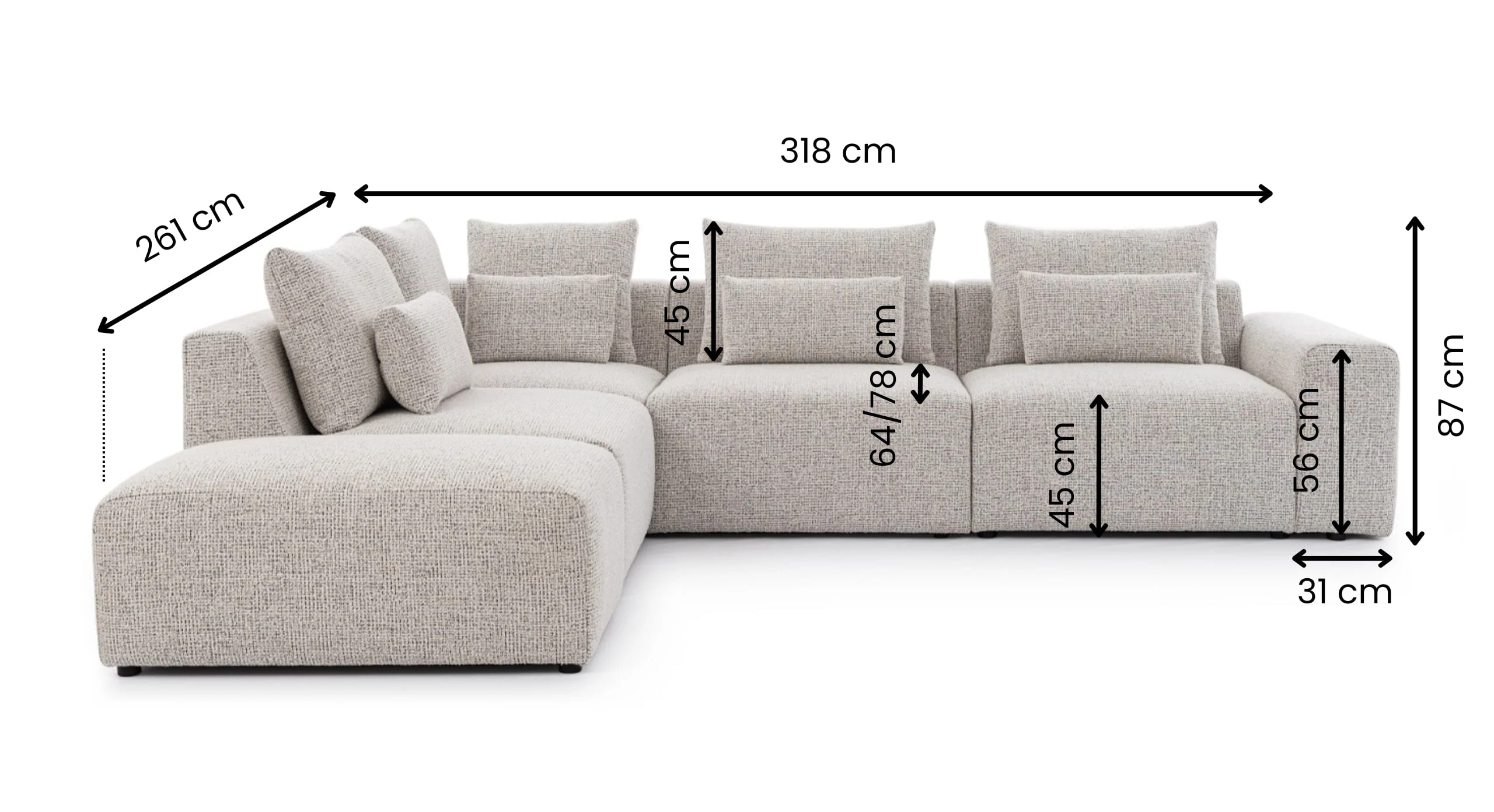 De hoekbank Diamant met hoek en eiland voorstaand links combineert stijl, comfort en functionaliteit in één prachtig ontwerp. Deze bank is voorzien van lage poten, vaste zitkussens, losse rugkussens en een poef, wat niet alleen zorgt voor een luxe uitstraling, maar ook voor optimaal zitcomfort. Het ruime zitvlak maakt de Diamant perfect voor zowel ontspanning na een lange dag als gezellige momenten met familie en vrienden. Dankzij het tijdloze design en de hoogwaardige afwerking past deze bank moeiteloos in zowel moderne als klassieke interieurs. Bestel vandaag nog jouw hoekbank Diamant!