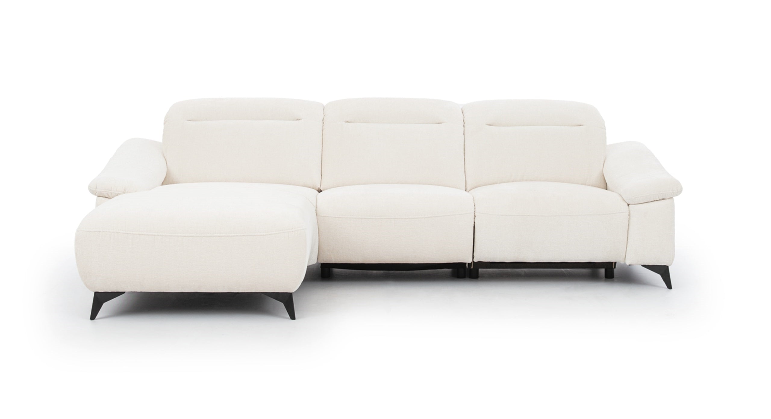 De Hoekbank Home met Relaxfunctie en Chaise Longue Links is de perfecte mix van stijl en comfort. Dit elegante model is ontworpen met oog voor ontspanning en functionaliteit. De chaise longue bevindt zich voorstaand links, terwijl de elektrisch verstelbare relaxfunctie in de 1,5-zits bij de armleuning ultieme luxe biedt. Het model bestaat uit een 1,5-zits element met armleuning rechts, een 1,5-zits zonder armleuningen en een chaise longue, waardoor het veel zitruimte biedt. Verstelbare hoofdsteunen zorgen voor persoonlijke ondersteuning, en de zwarte, puntige metalen poten voegen een strak en modern accent toe. De horizontale naad in de rugleuning geeft een verfijnd detail aan het eigentijdse ontwerp. Deze bank is ideaal voor wie luxe en functionaliteit wil samenbrengen in één stijlvol meubelstuk.
