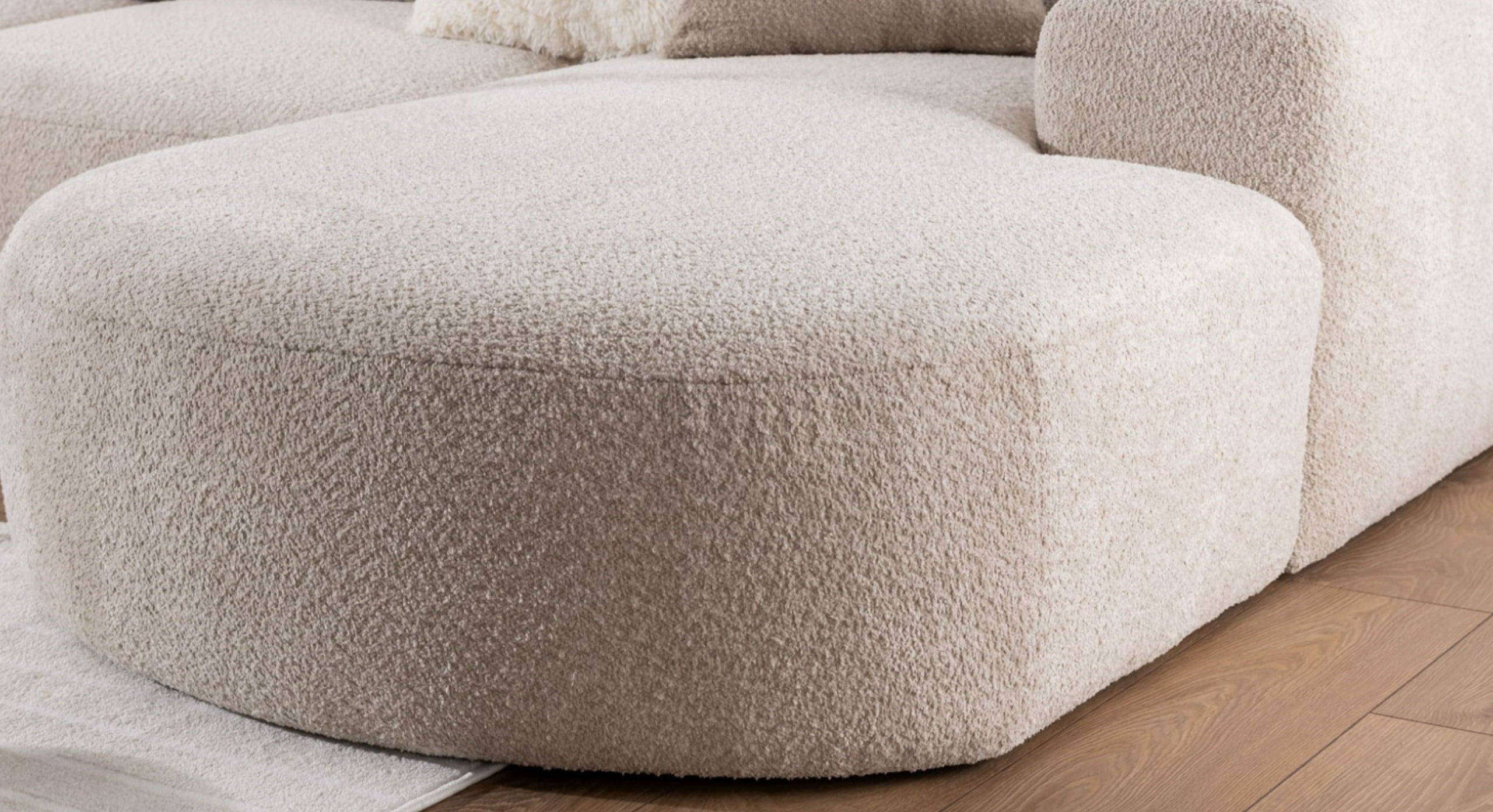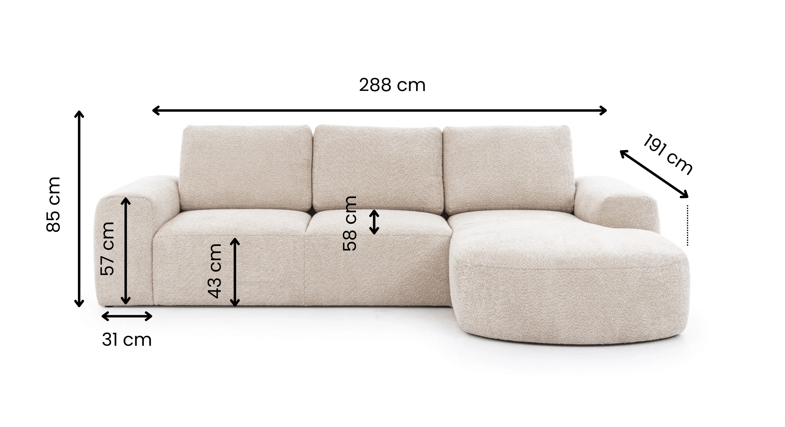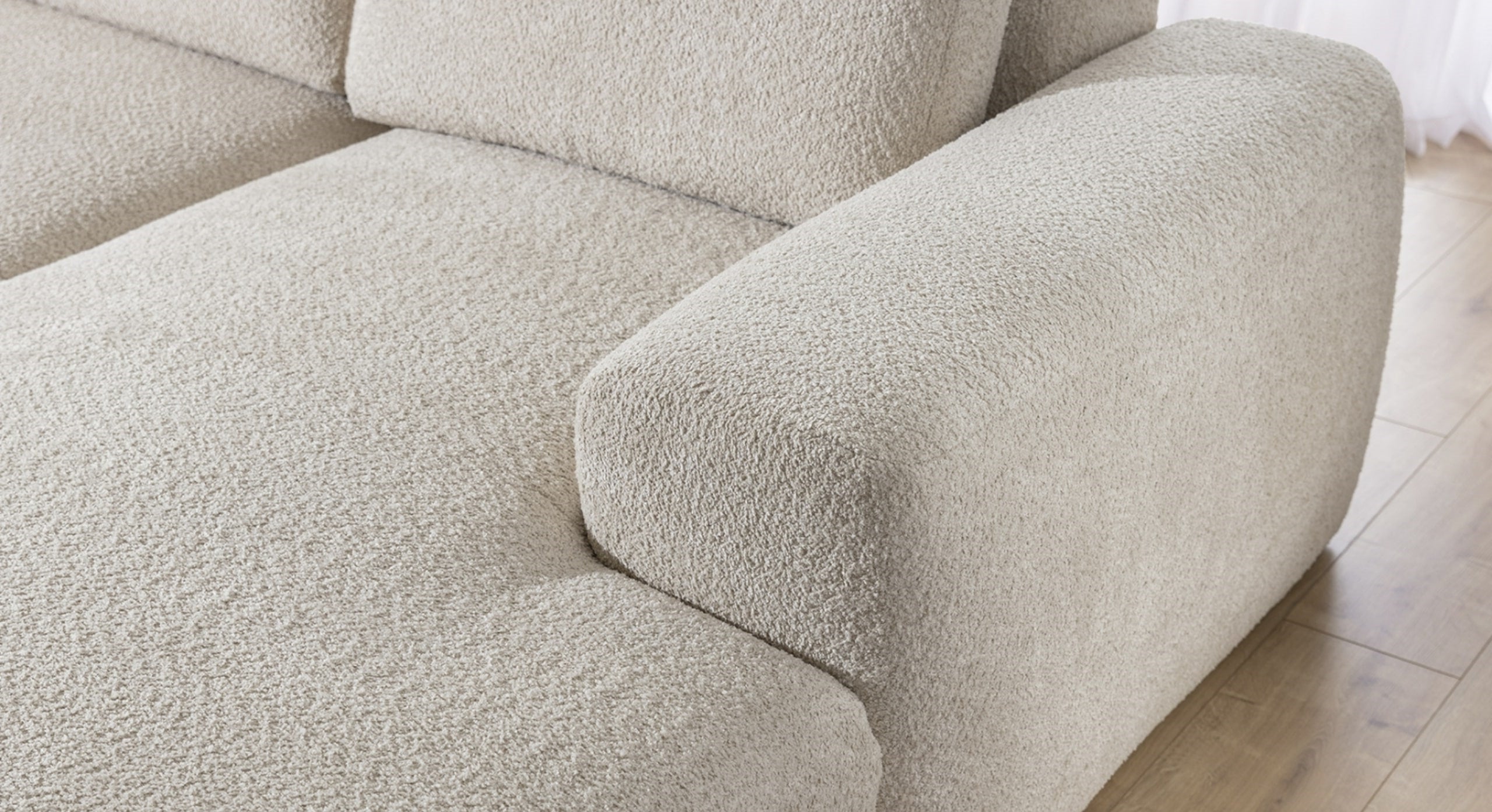 Hoekbank Snug met Chaise Longue Rechts is de ideale balans tussen stijl en ontspanning. De ronde chaise longue aan de rechterkant creëert een zachte, vloeiende lijn die de bank een eigentijdse uitstraling geeft. De vaste zitkussens bieden stevige ondersteuning, terwijl de losse rugkussens je de vrijheid geven om je zitcomfort aan te passen. De brede, rondlopende armleuningen voegen een luxueus element toe aan het ontwerp, terwijl de lage pootjes de bank een moderne en verfijnde look geven. Bekleed met een zachte bouclé- of teddy-stof is de Snug een comfortabele en stijlvolle keuze voor elke woonkamer. Bovendien is de bank beschikbaar in verschillende andere trendy stoffen voor een persoonlijke touch.