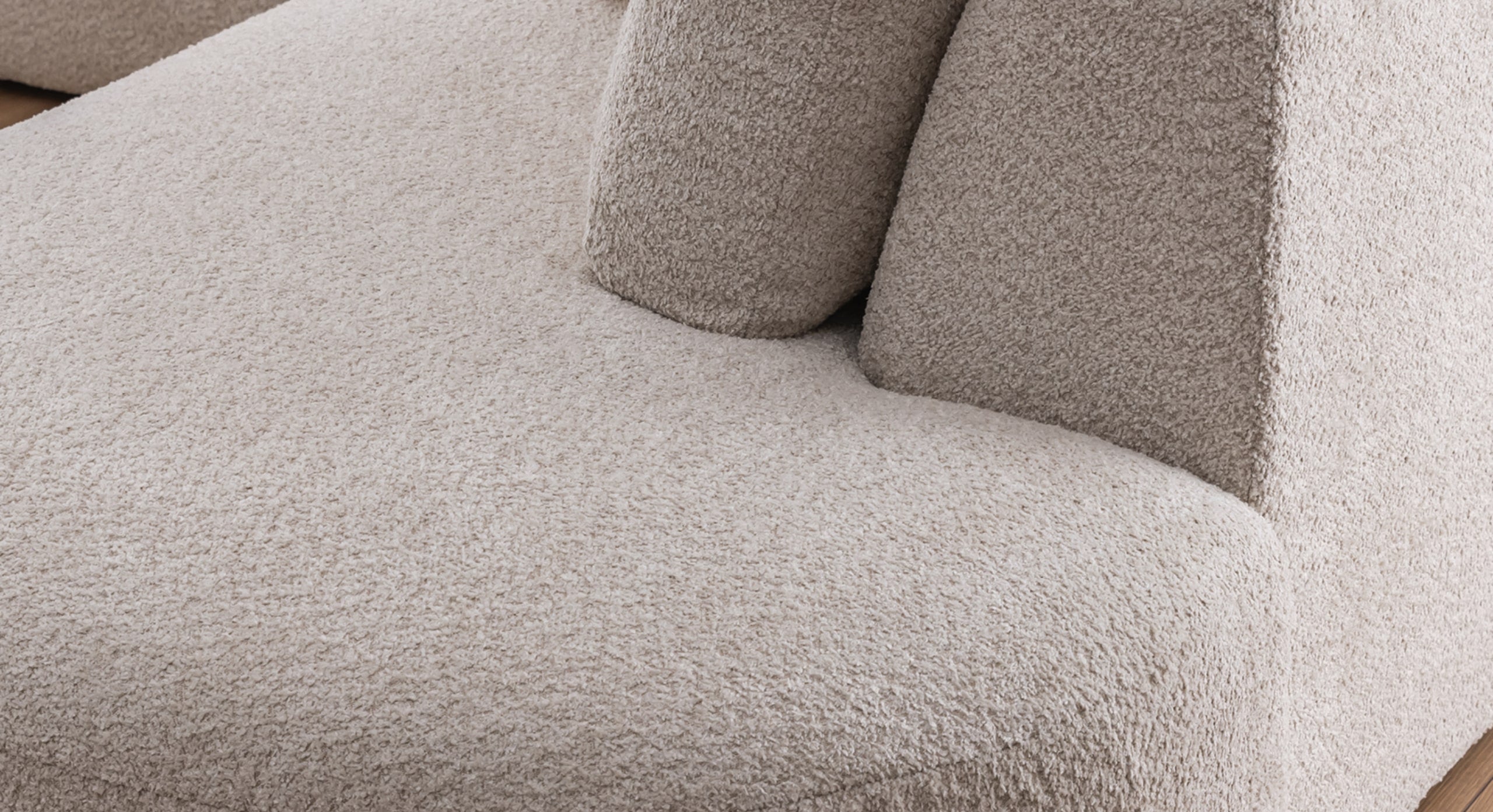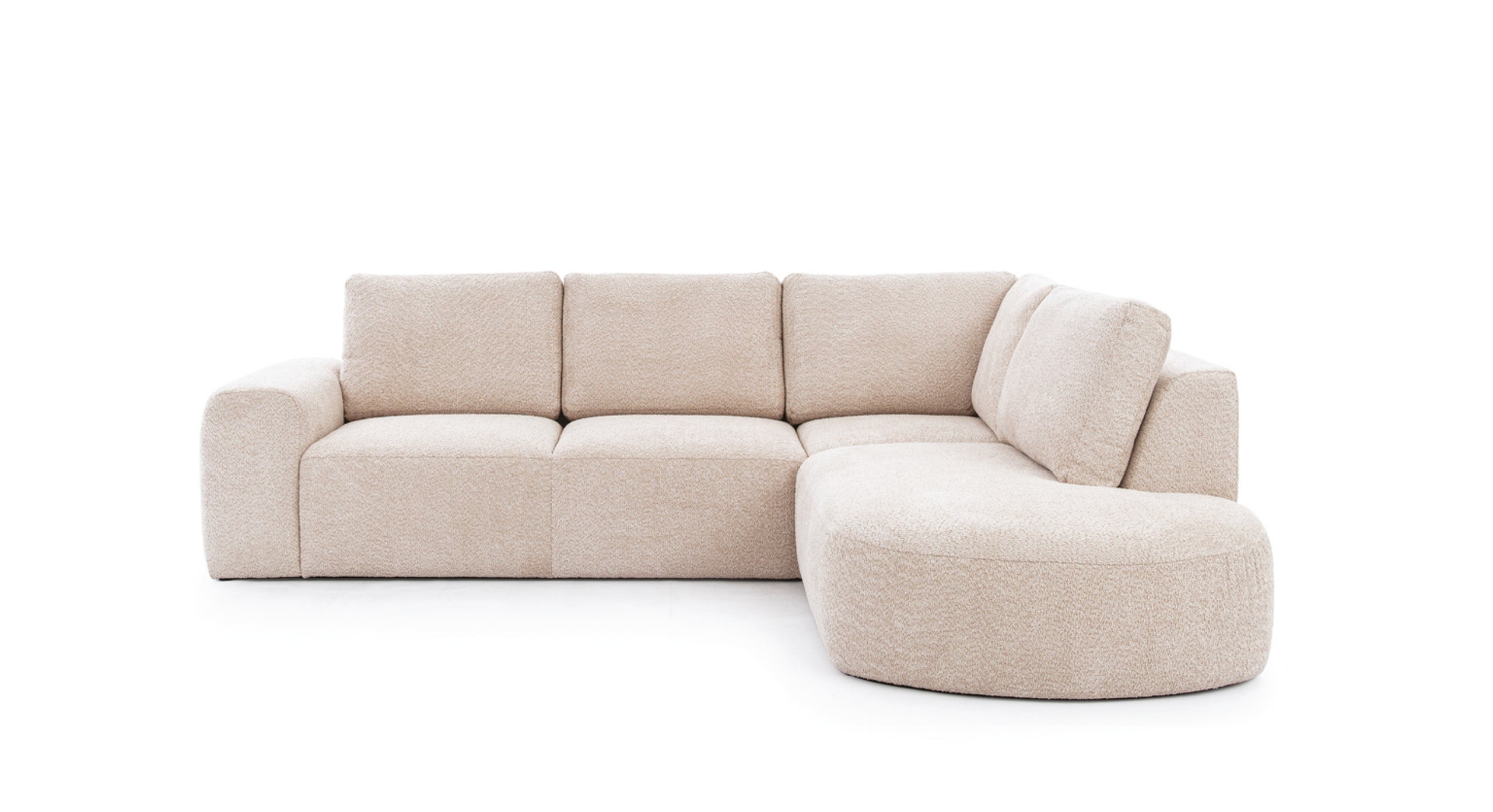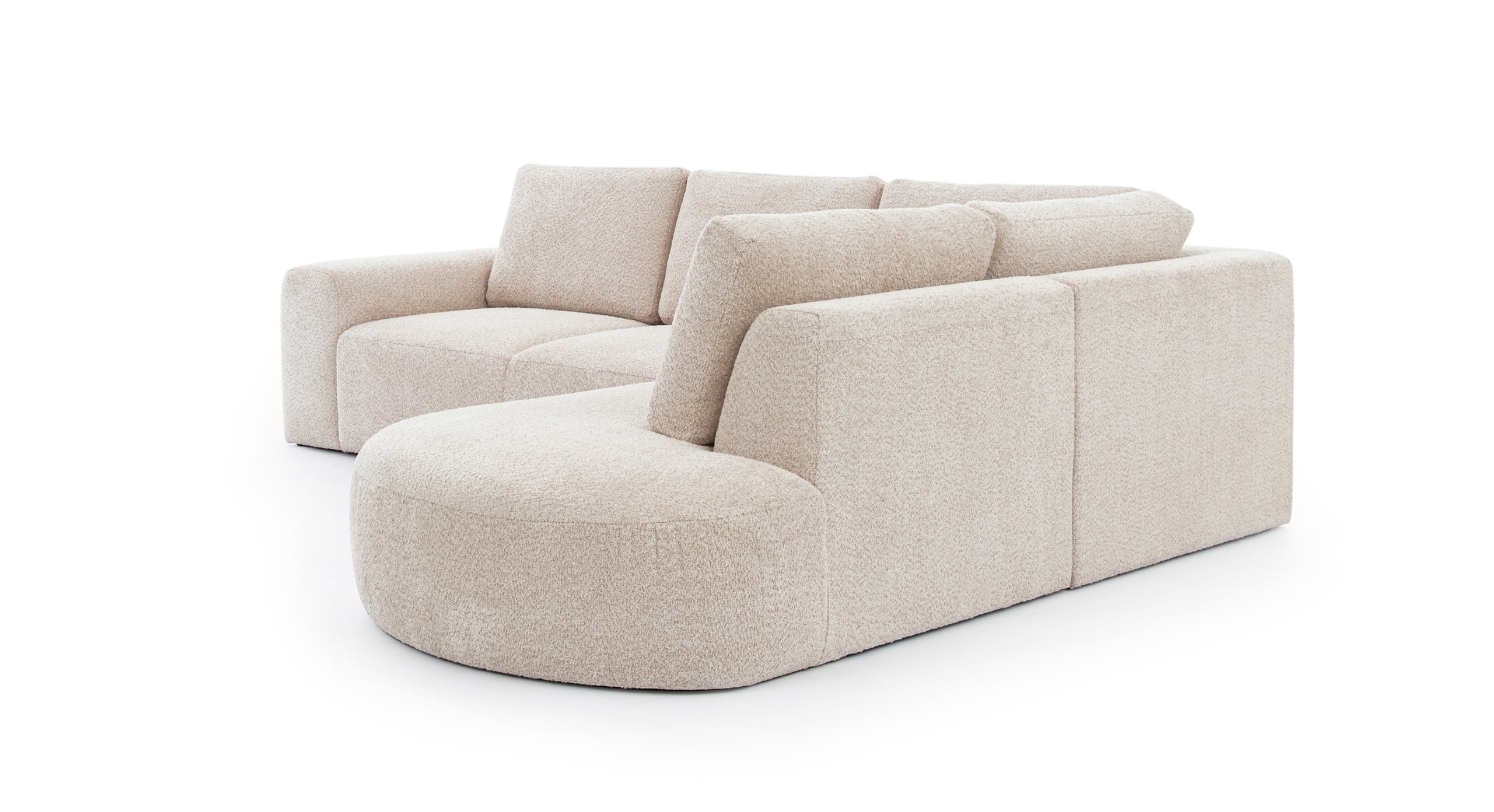 Hoekbank Snug met Hoek en Eiland Rechts is de perfecte keuze voor wie houdt van comfort en stijl in één. Met zijn losse rugkussens en vaste zitkussens biedt deze bank ultieme ondersteuning en gemak. De brede, rondlopende armleuningen en de unieke ronde vorm van de hoek en eiland geven een eigentijdse uitstraling, terwijl de lage pootjes zorgen voor een elegante en gezellige sfeer. Snug komt prachtig tot zijn recht in een luxe bouclé- of teddy-stof, wat het design nog zachter en uitnodigender maakt. Deze hoekbank is niet alleen een blikvanger, maar ook een heerlijk plek om te ontspannen!
