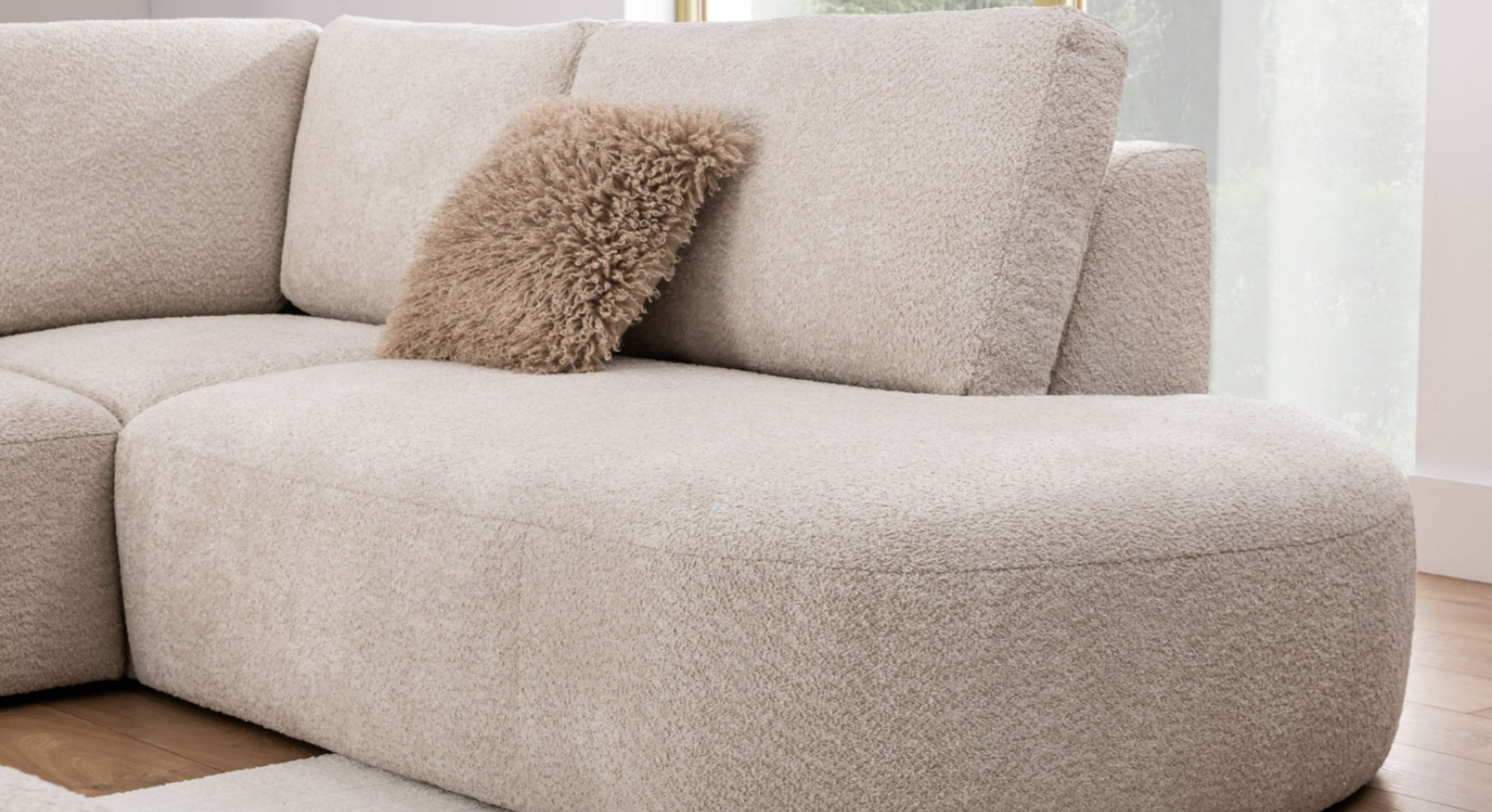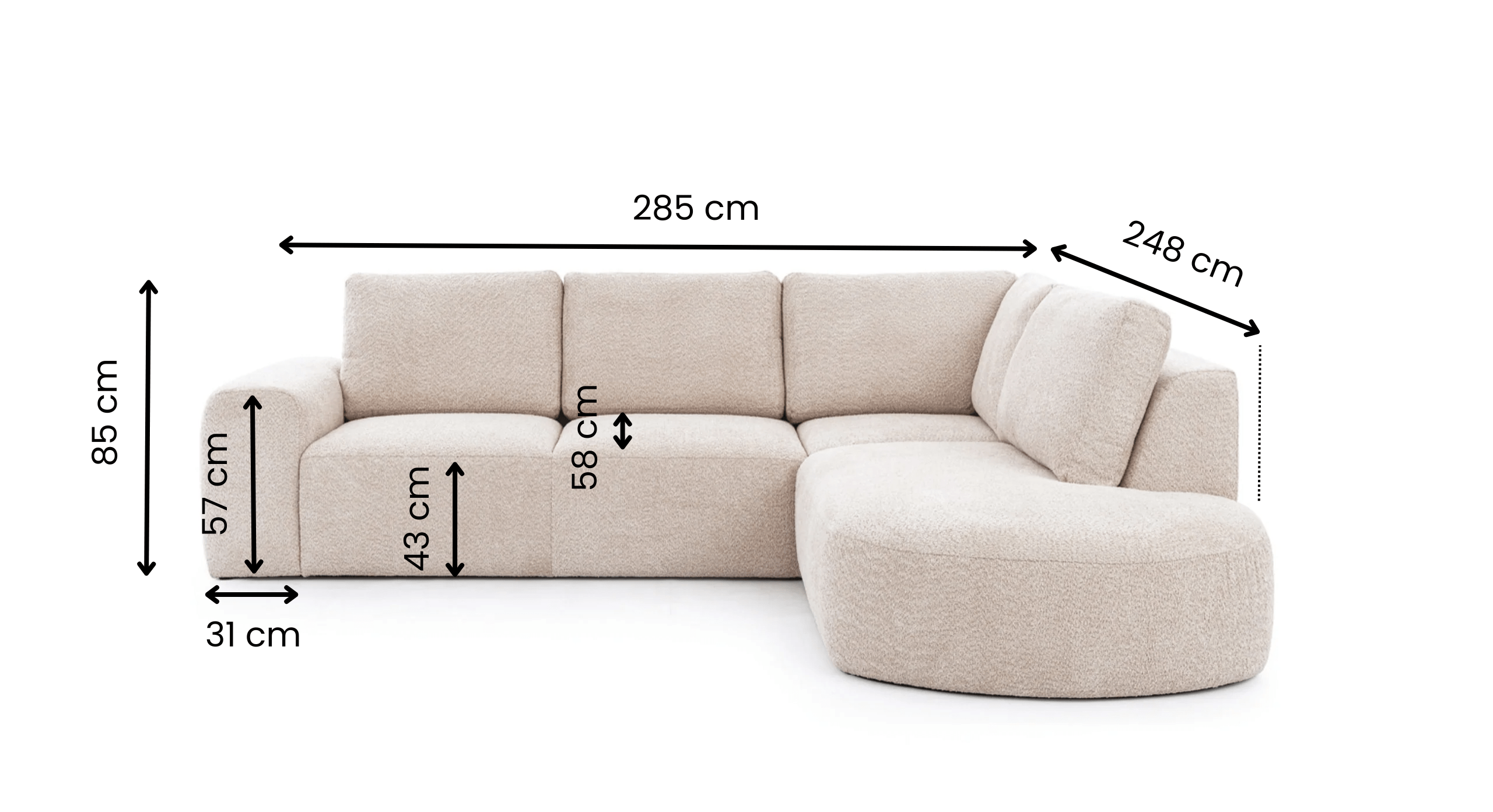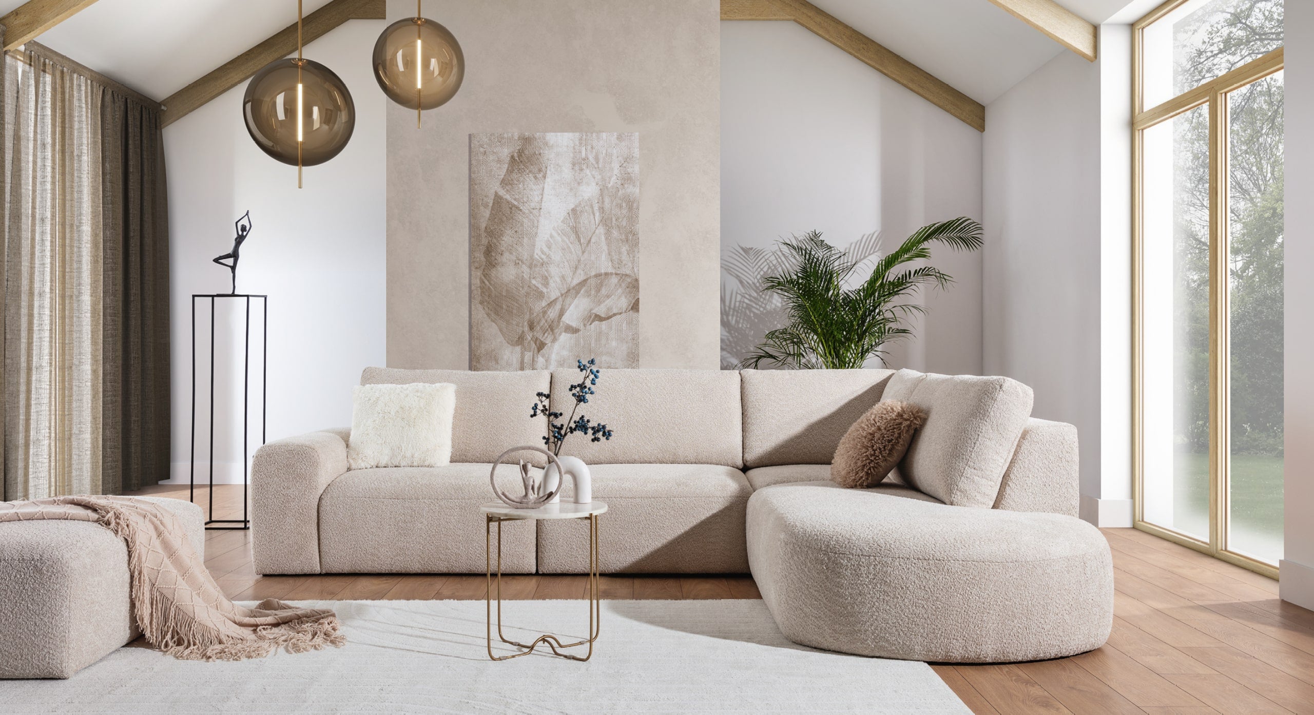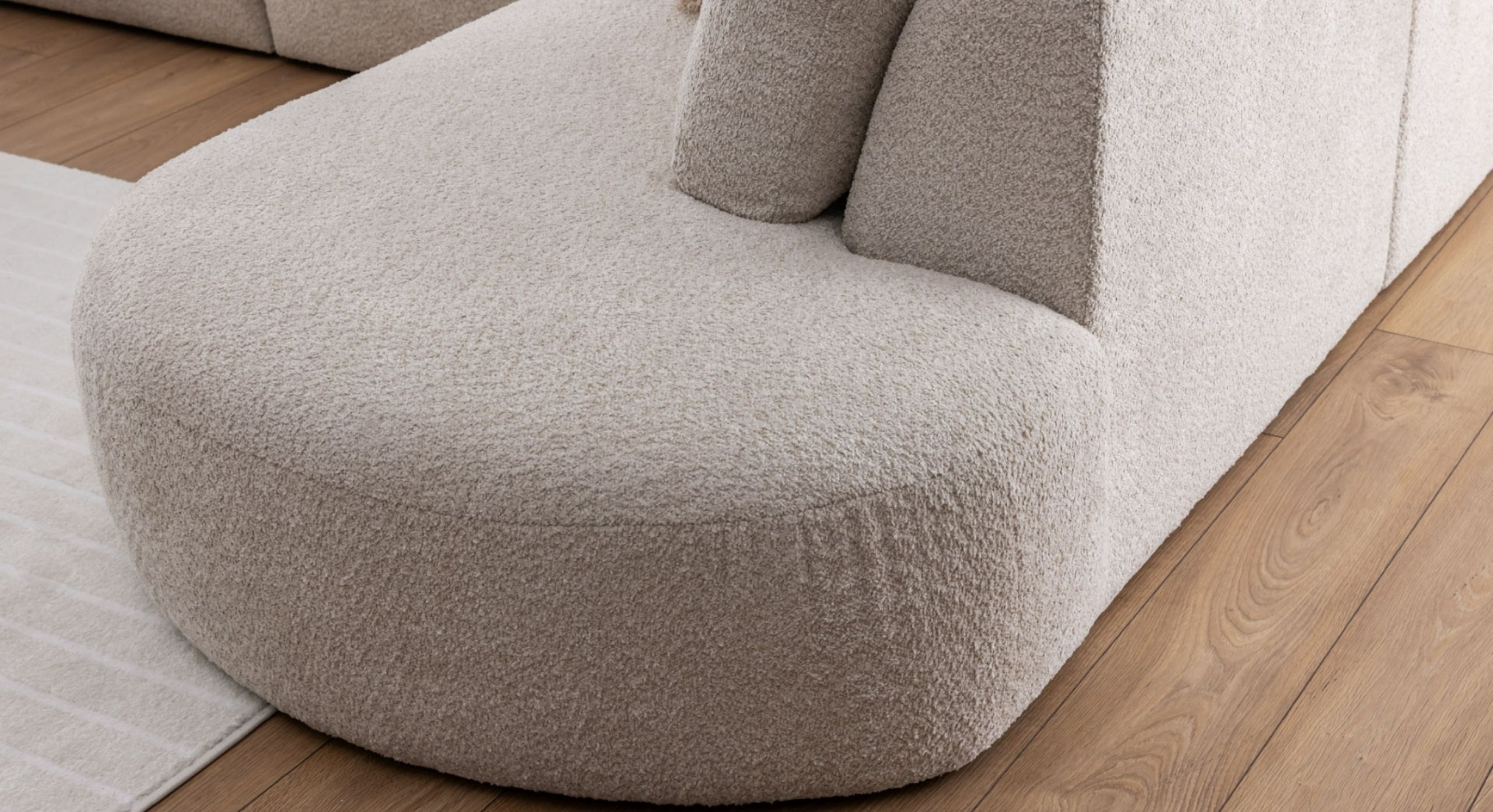 Hoekbank Snug met Hoek en Eiland Rechts is de perfecte keuze voor wie houdt van comfort en stijl in één. Met zijn losse rugkussens en vaste zitkussens biedt deze bank ultieme ondersteuning en gemak. De brede, rondlopende armleuningen en de unieke ronde vorm van de hoek en eiland geven een eigentijdse uitstraling, terwijl de lage pootjes zorgen voor een elegante en gezellige sfeer. Snug komt prachtig tot zijn recht in een luxe bouclé- of teddy-stof, wat het design nog zachter en uitnodigender maakt. Deze hoekbank is niet alleen een blikvanger, maar ook een heerlijk plek om te ontspannen!