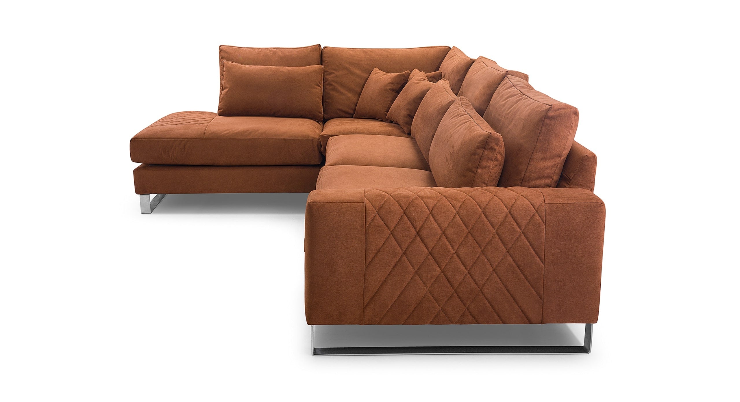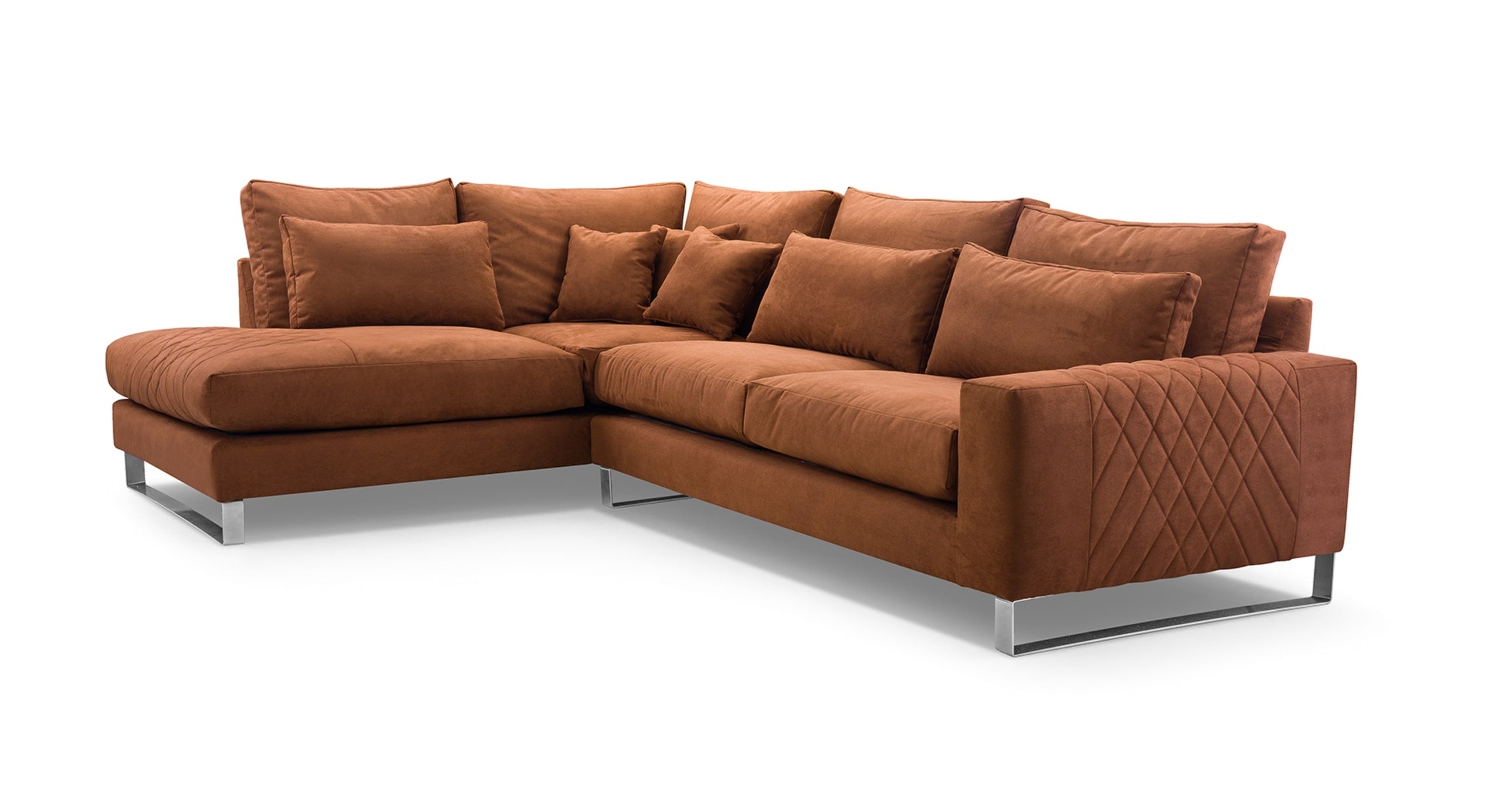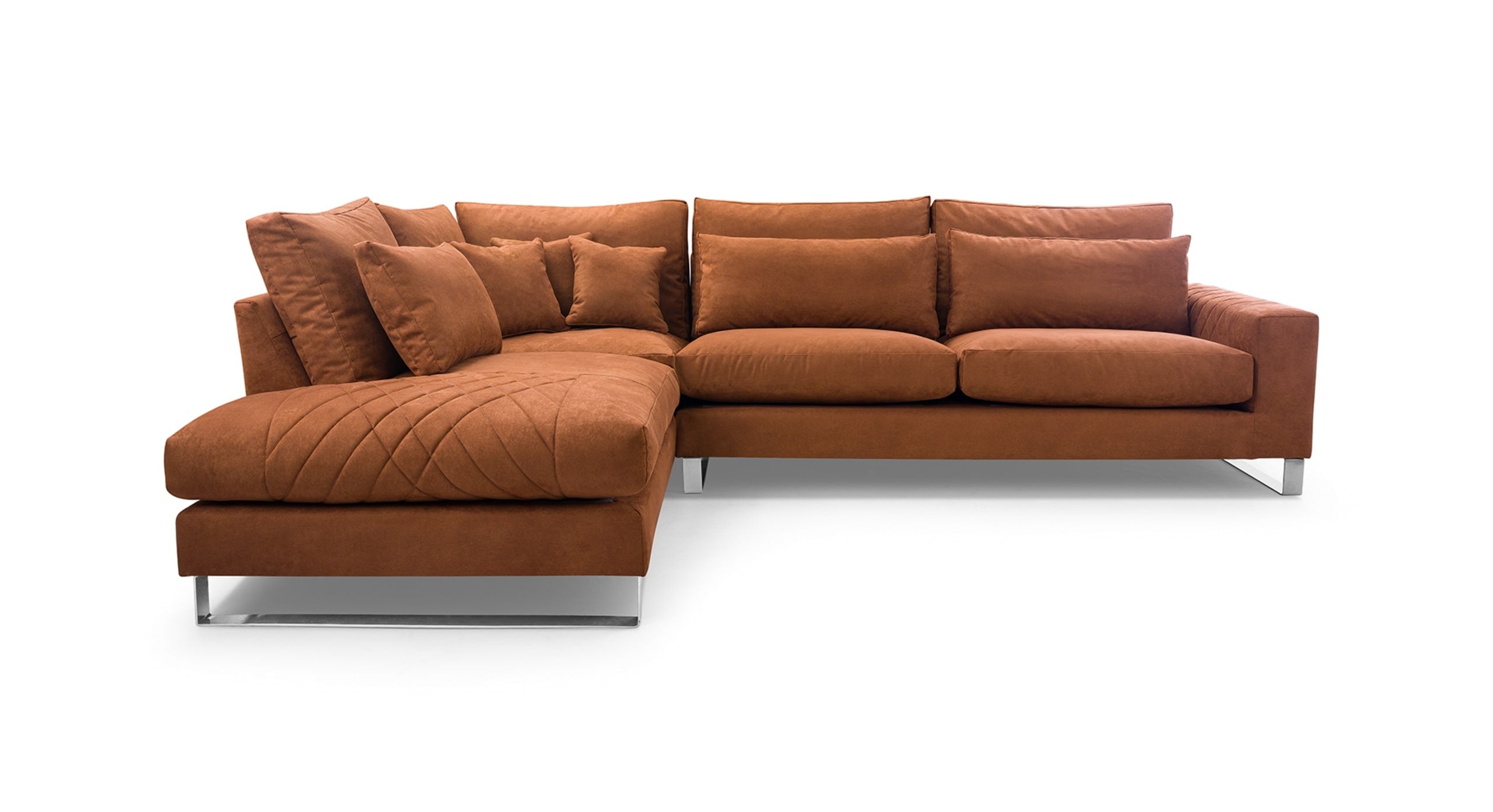 De Hoekbank Stitch met hoek en eiland links combineert comfort met verfijnde details. Dankzij de losse rugkussens en royale zitting geniet je van een heerlijk ontspannen zitervaring. De armleuning met decoratieve stiknaden geeft de bank een elegante, eigentijdse uitstraling, terwijl de zilverkleurige metalen poten zorgen voor een moderne en luchtige afwerking. Inclusief 5 losse rugkussens, 3 lendenkussens en 3 sierkussens voor extra comfort en een knusse, uitnodigende look. Verkrijgbaar in een linker- en rechtervariant. De Stitch is dé keuze voor wie houdt van een zachte, stijlvolle bank met karakter.