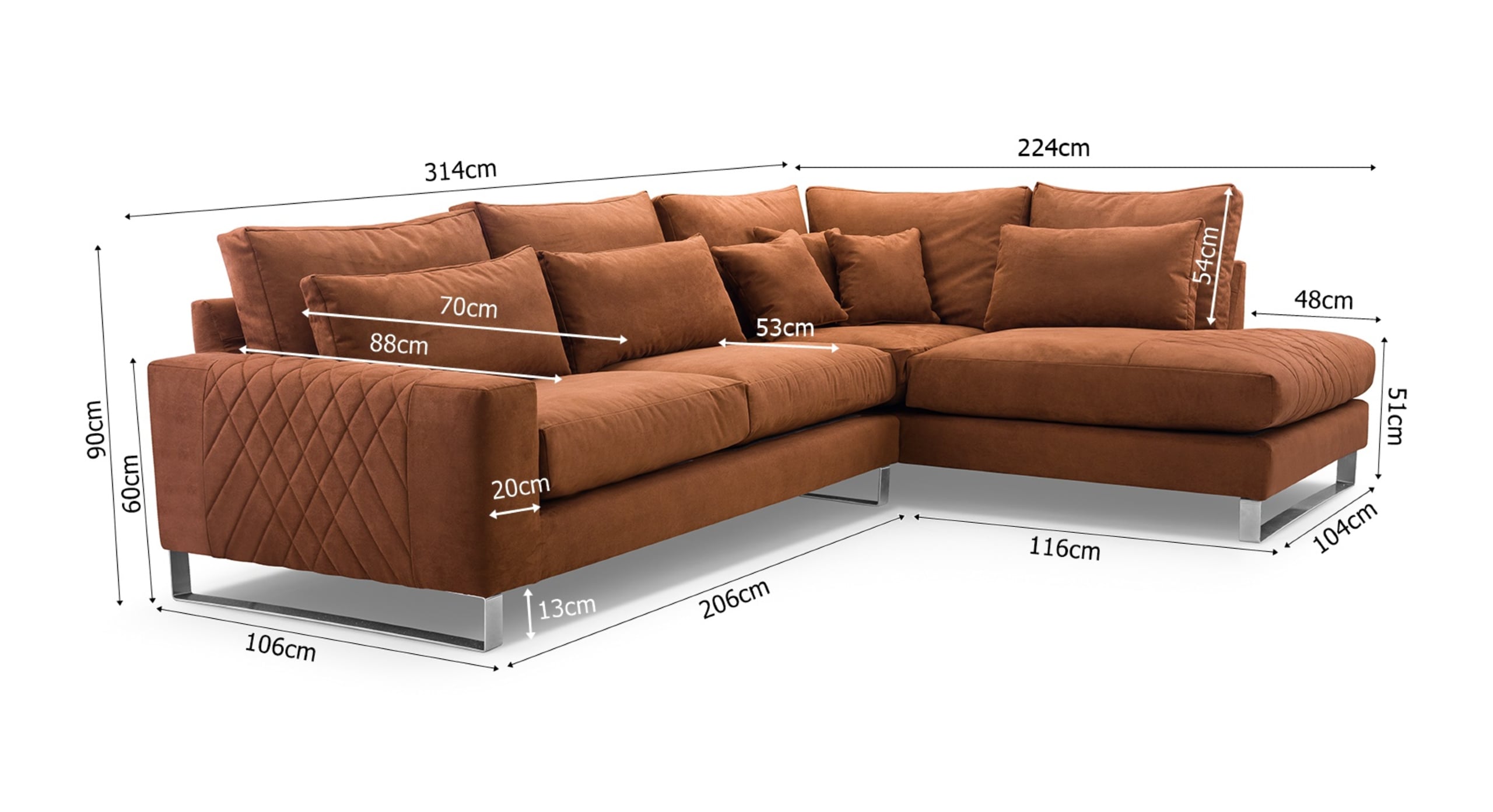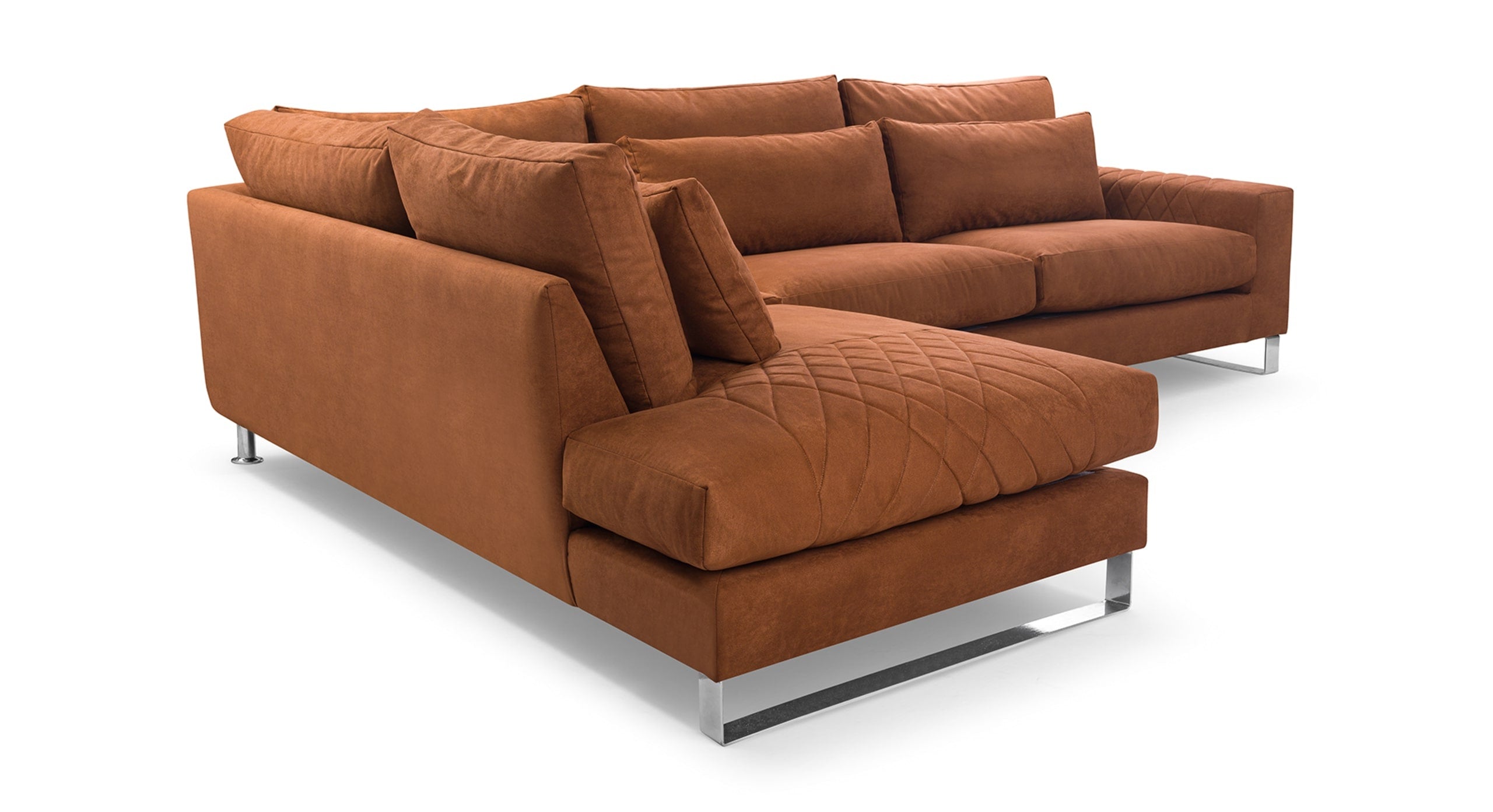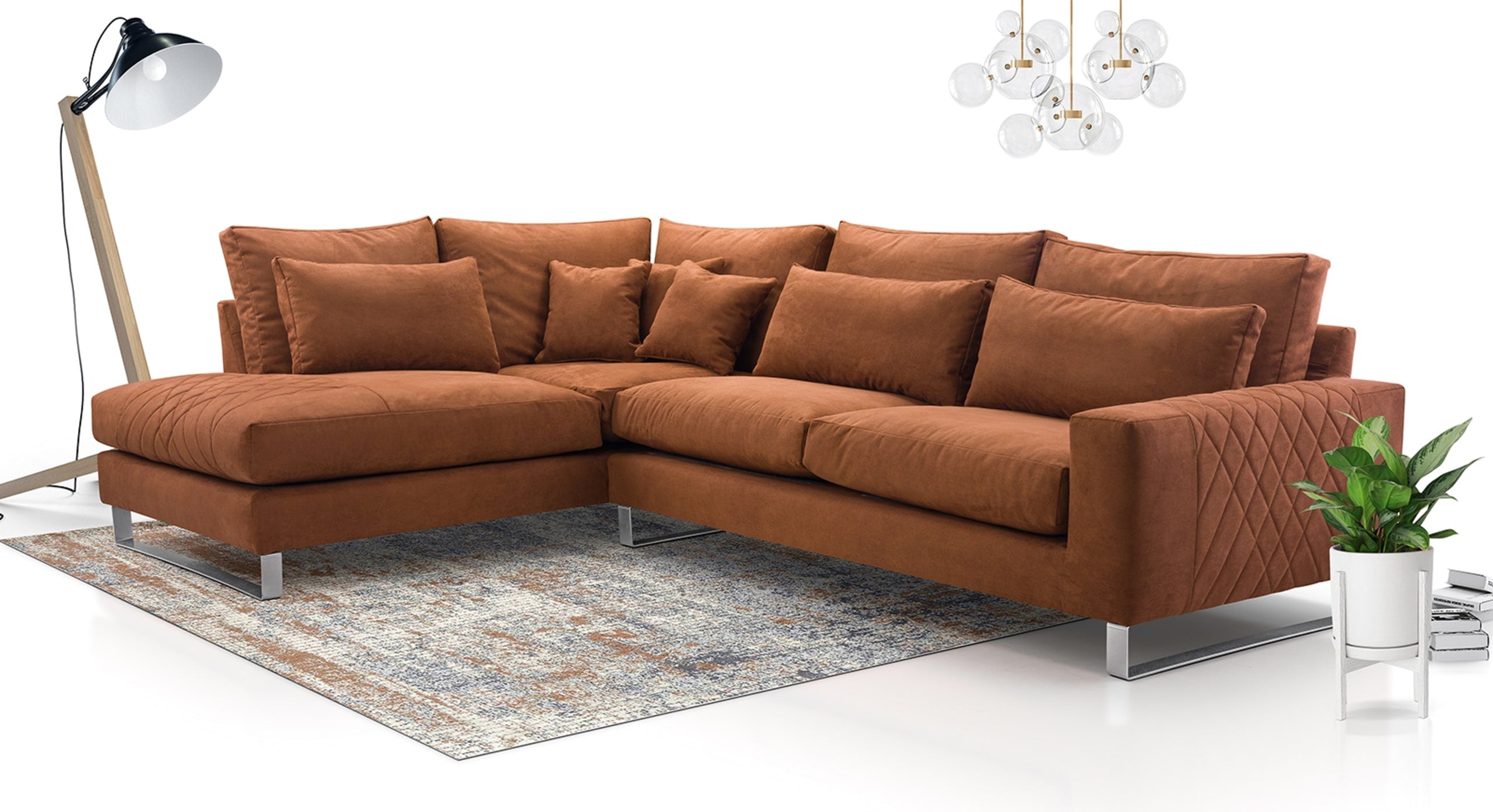 De Hoekbank Stitch met hoek en eiland links combineert comfort met verfijnde details. Dankzij de losse rugkussens en royale zitting geniet je van een heerlijk ontspannen zitervaring. De armleuning met decoratieve stiknaden geeft de bank een elegante, eigentijdse uitstraling, terwijl de zilverkleurige metalen poten zorgen voor een moderne en luchtige afwerking. Inclusief 5 losse rugkussens, 3 lendenkussens en 3 sierkussens voor extra comfort en een knusse, uitnodigende look. Verkrijgbaar in een linker- en rechtervariant. De Stitch is dé keuze voor wie houdt van een zachte, stijlvolle bank met karakter.
