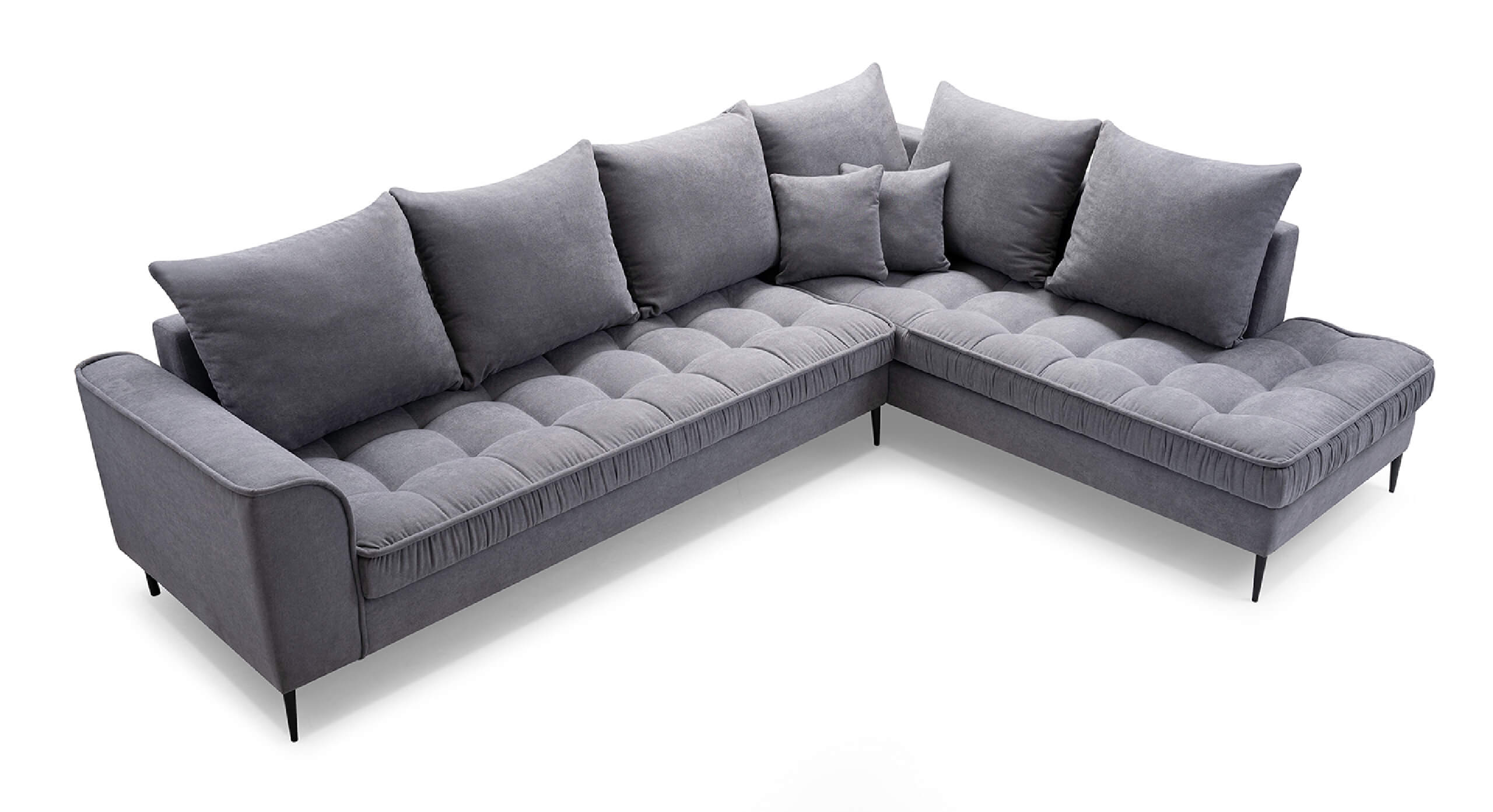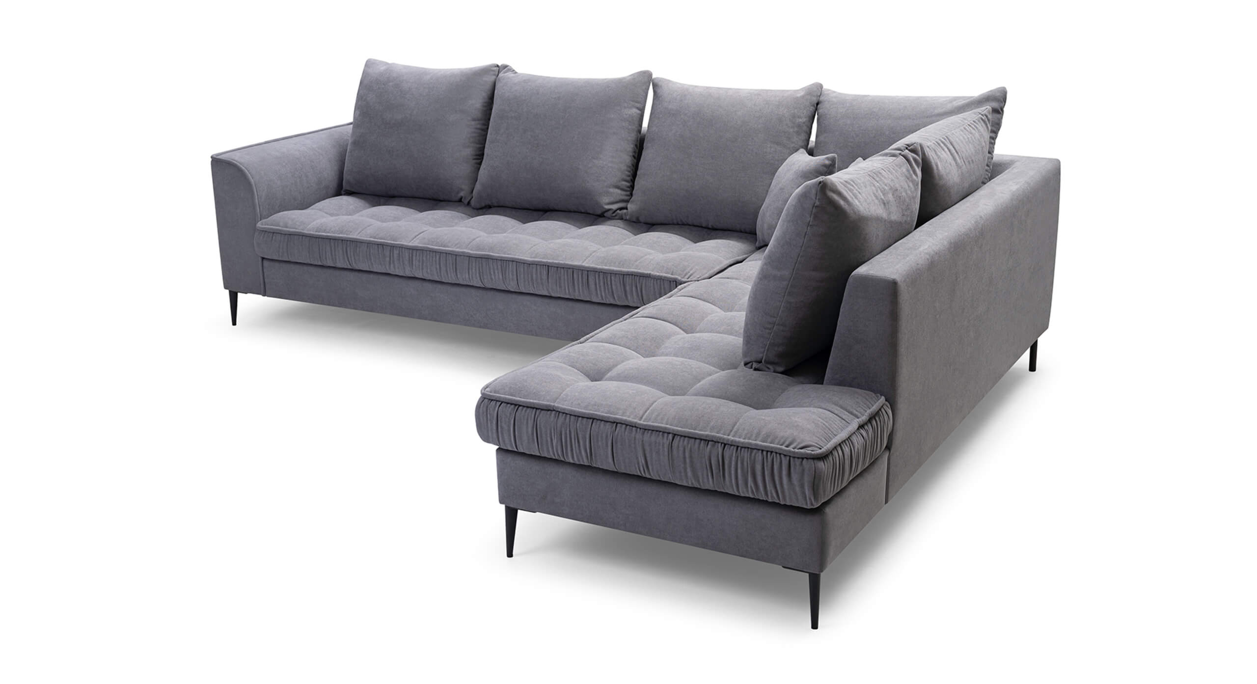 De Hoekbank Valora met Chaise Longue rechts is een moderne eyecatcher die direct warmte en comfort uitstraalt. Dankzij het luchtige design op hoge, slanke metalen poten oogt deze hoekbank verrassend ruimtelijk. De gecapitonneerde zitkussens geven een chique twist aan het zachte, uitnodigende zitoppervlak is perfect voor lange avonden ontspannen.