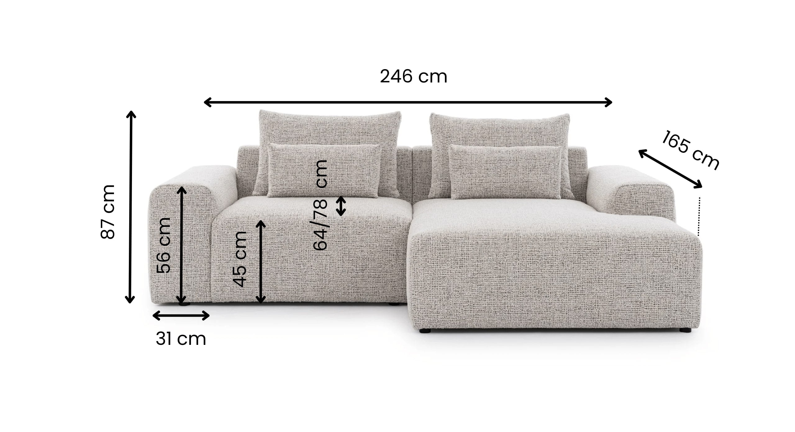 De kleine hoekbank Diamant met chaise longue links is de ideale keuze voor wie een stijlvolle en functionele zitoplossing zoekt. Het strakke design met lage poten en het compacte formaat passen perfect in kleinere ruimtes, zonder in te boeten op comfort. De vaste zitkussens en losse rugkussens bieden uitstekende ondersteuning, terwijl de chaise longue links een extra relaxplek creëert. Dankzij het tijdloze ontwerp en de hoogwaardige materialen past deze bank moeiteloos in verschillende interieurstijlen. Perfect voor wie op zoek is naar een moderne en praktische bank voor elke ruimte.