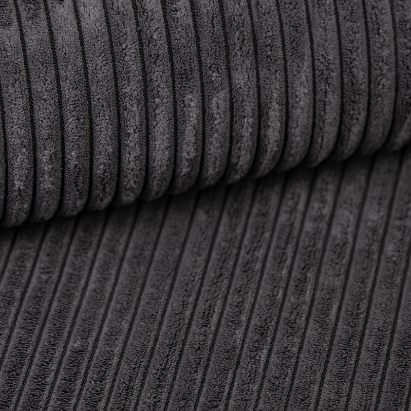 De Poso 034 Antraciet is een stijlvolle ribfluweel stof die een luxe uitstraling heeft, met een diepe antracietkleur die zowel elegant als tijdloos is. Het opvallende ribpatroon geeft de stof een rijke textuur die een verfijnde sfeer aan je interieur toevoegt. Met een grammage van 360 g/m² biedt de Poso 034 Antraciet een perfecte balans tussen stevigheid en comfort, ideaal voor meubels die dagelijks gebruikt worden maar ook een visueel statement willen maken. Gemaakt van 90% polyester en 10% nylon, heeft deze stof een Martindale score van 35.000, wat aangeeft dat hij bestand is tegen slijtage en langdurig gebruik. De kleurvastheid van 4-5 zorgt ervoor dat de antracietkleur zijn diepte en intensiteit behoudt, zelfs na veelvuldig gebruik. Bestel een stofstaal van de Poso 034 Antraciet en ervaar de luxe en robuustheid van deze prachtige ribfluweel stof, die een moderne en elegante touch aan je meubels geeft.