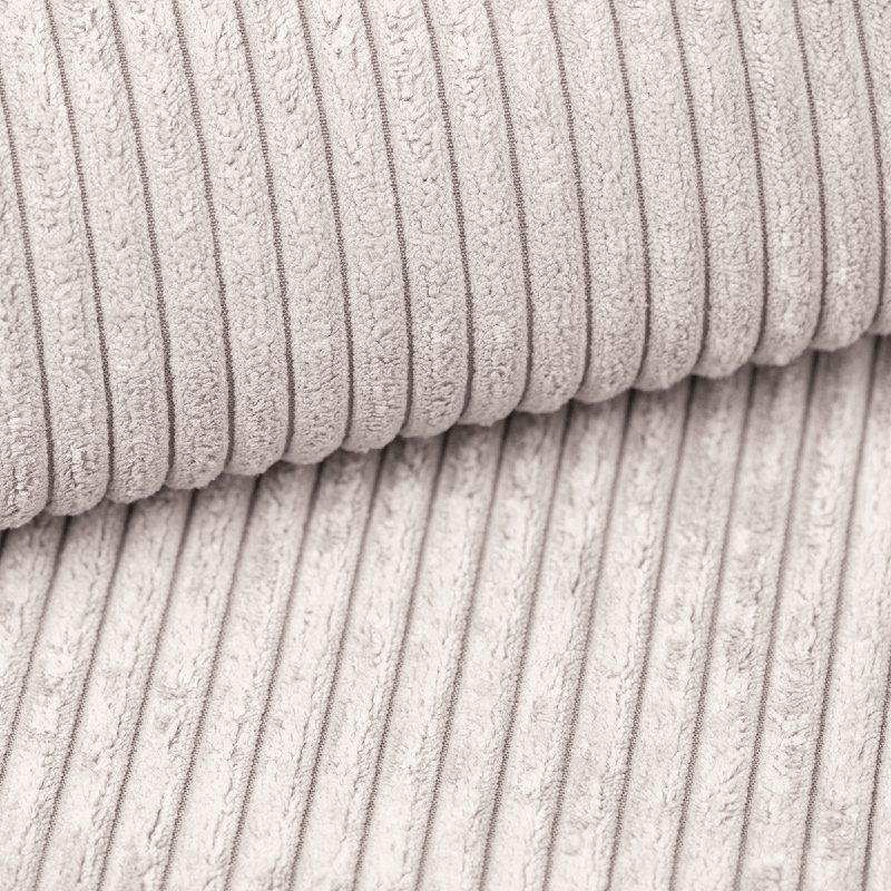De Poso 100 Creme is een elegante ribfluweel stof in een zachte, lichte crème tint die warmte en verfijning toevoegt aan elk interieur. Het rijke ribpatroon creëert een luxe uitstraling, terwijl de lichte kleur een frisse, tijdloze sfeer in je ruimte brengt. Met een grammage van 360 g/m² biedt deze stof de perfecte balans tussen stevigheid en zachtheid, ideaal voor meubels die zowel stijlvol als comfortabel moeten zijn. De Poso 100 Creme is samengesteld uit 90% polyester en 10% nylon, en heeft een Martindale score van 35.000, wat aangeeft dat de stof goed bestand is tegen dagelijks gebruik en slijtage. De kleurvastheid van 4-5 zorgt ervoor dat de crème tint zijn elegantie behoudt, zelfs na veelvuldig gebruik. Bestel een stofstaal van de Poso 100 Creme en ervaar de luxe en duurzaamheid van deze prachtige ribfluweel stof, die een zachte, verfijnde uitstraling aan je meubels en interieur toevoegt.