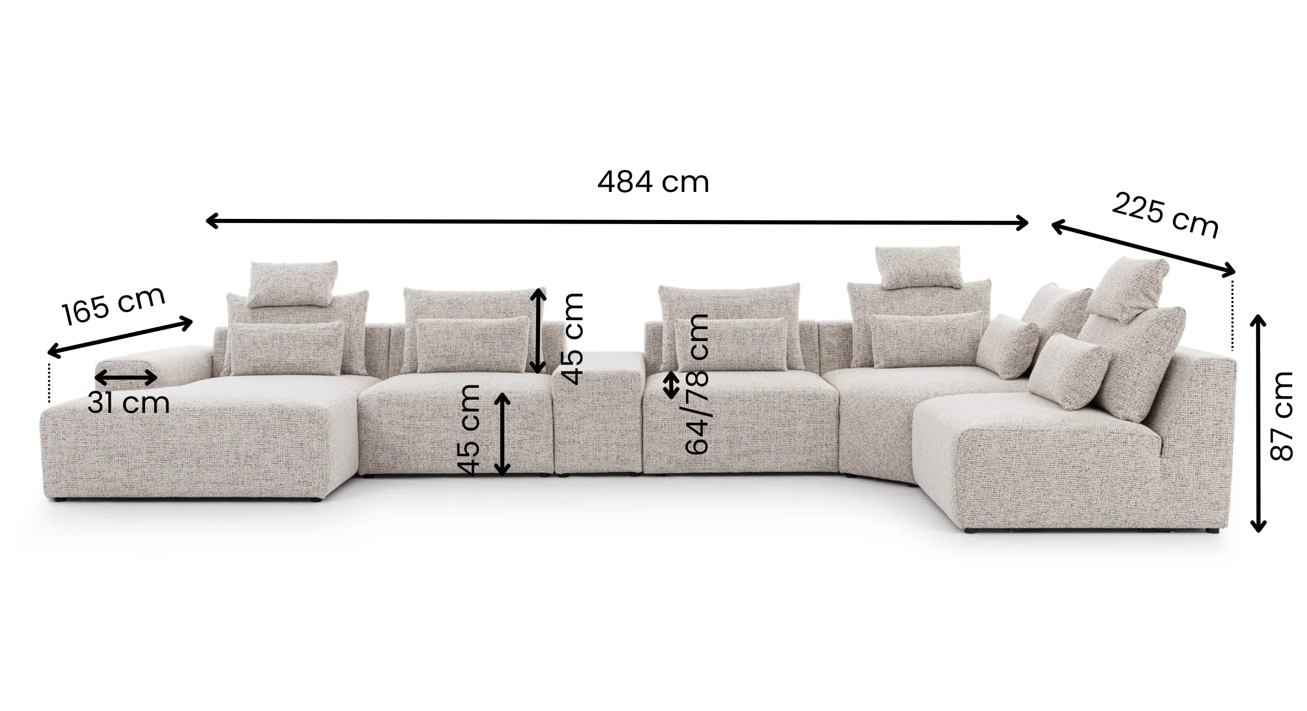 | Hoogte rugkussens | 45 cm |