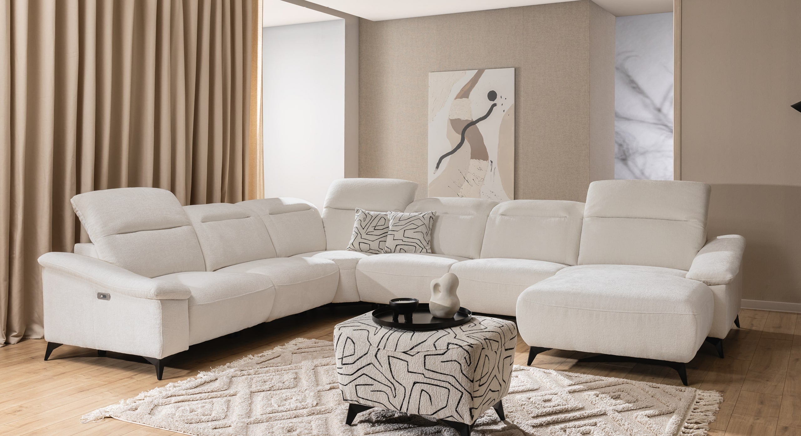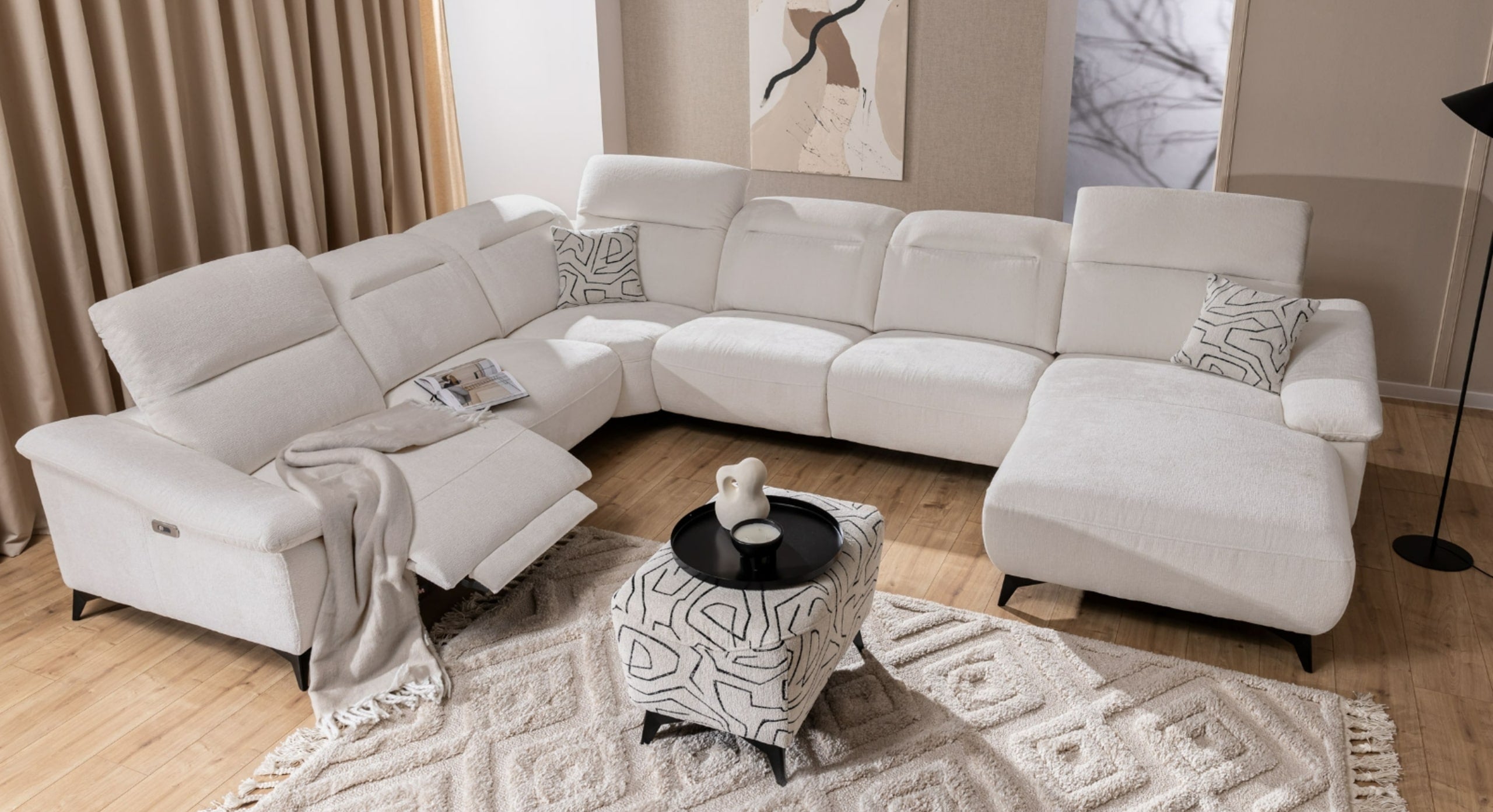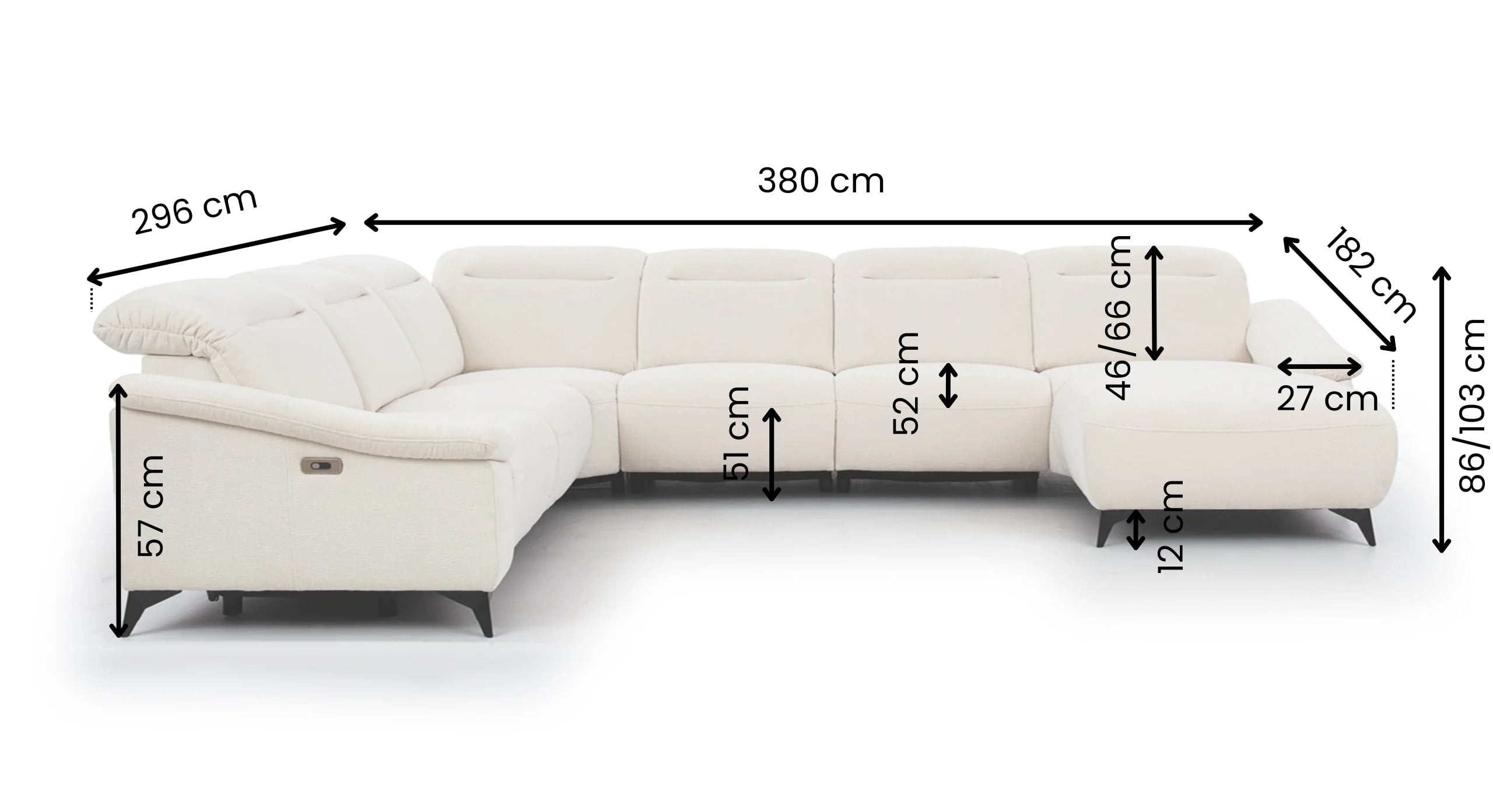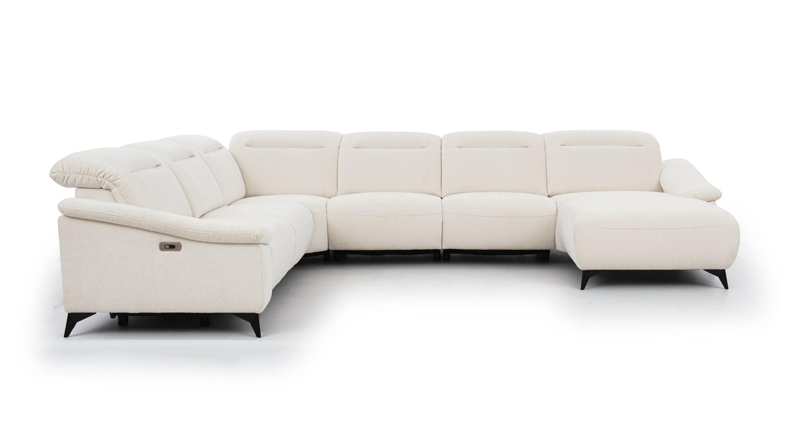 De U-bank Home met Relaxfunctie en Chaise Longue Rechts is het ultieme meubelstuk voor wie op zoek is naar luxe, comfort en een modern design. Met een royale chaise longue voorstaand rechts biedt deze bank alle ruimte om te ontspannen. De elektrisch verstelbare relaxfunctie in de 1,5-zits bij de armleuning zorgt voor een comfortabele zitervaring. De verstelbare hoofdsteunen bieden extra ondersteuning en comfort, terwijl de horizontale naad in de rugleuning een subtiele, stijlvolle uitstraling geeft. De zwarte, puntige metalen poten maken het eigentijdse ontwerp helemaal af. Deze U-bank is niet alleen een blikvanger in je interieur, maar ook een functionele keuze voor wie design en ontspanning wil combineren in één meubelstuk.