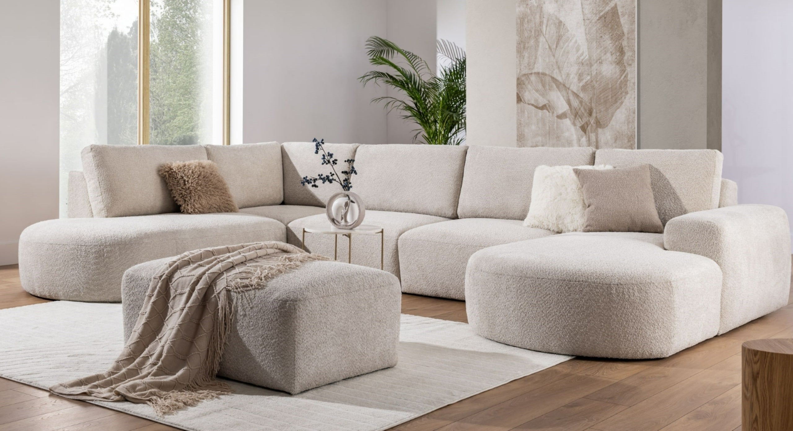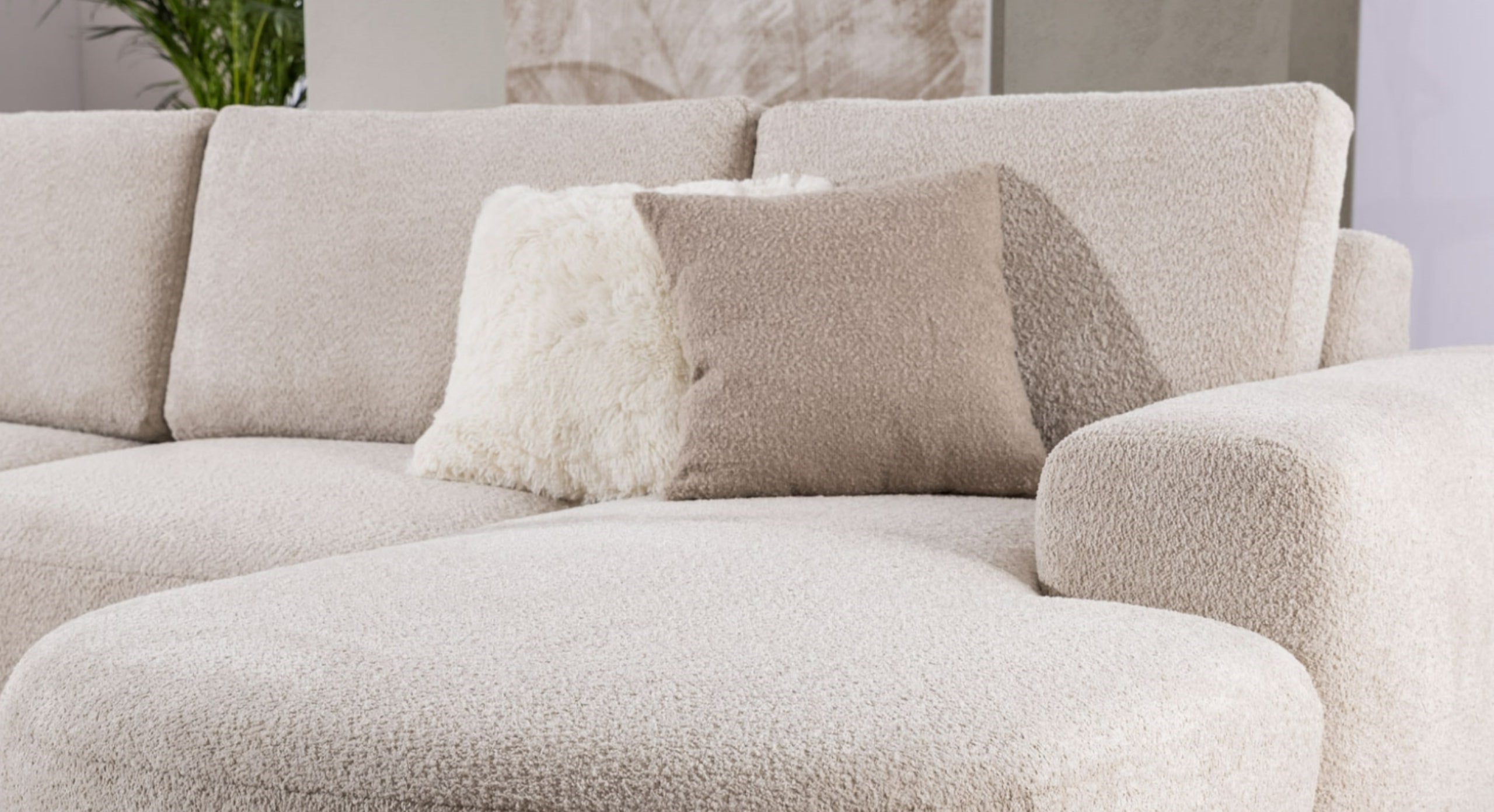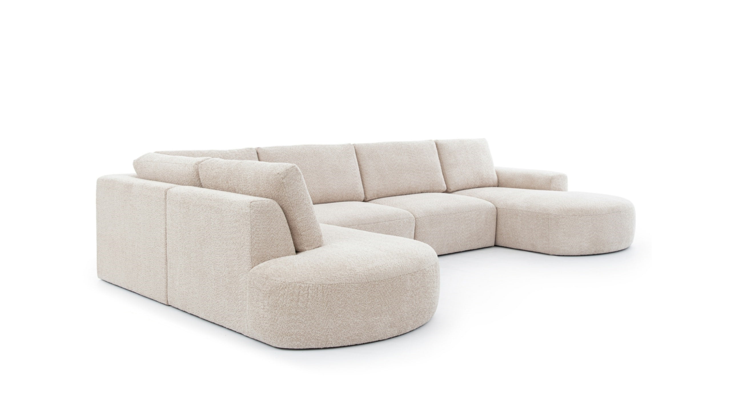 U-bank Snug met Chaise Longue Rechts biedt de ultieme combinatie van ruimte en stijl. De royale chaise longue aan de rechterzijde zorgt voor een luxe zitplek om volledig in te ontspannen, terwijl het ontwerp met hoek en eiland aan de linkerzijde perfect is voor een extra zit- of loungeplek. De bank heeft brede, rondlopende armleuningen en losse rugkussens voor maximaal comfort, aangevuld met stevige vaste zitkussens. De lage pootjes geven de bank een moderne uitstraling die perfect past in elk interieur. Bekleed in een zachte bouclé- of teddy-stof biedt de Snug niet alleen comfort, maar ook een stijlvolle aanvulling op je woonkamer. Bovendien is de U-bank beschikbaar in verschillende trendy stoffen om de look helemaal naar wens aan te passen.