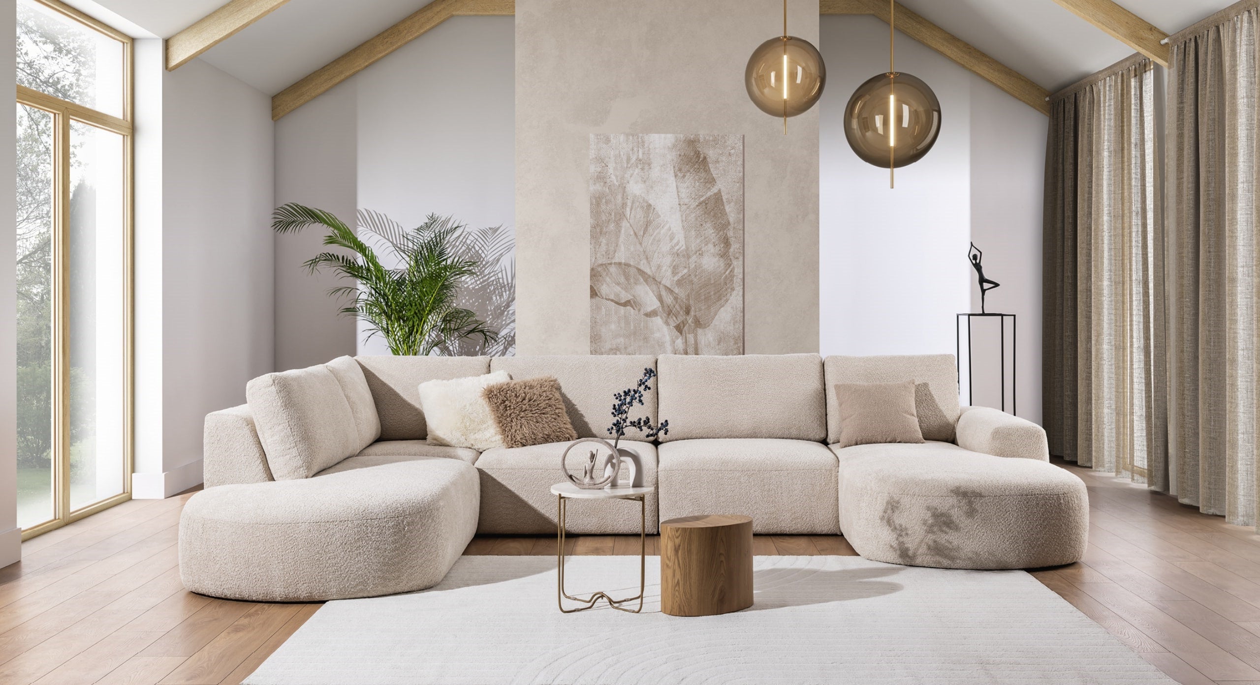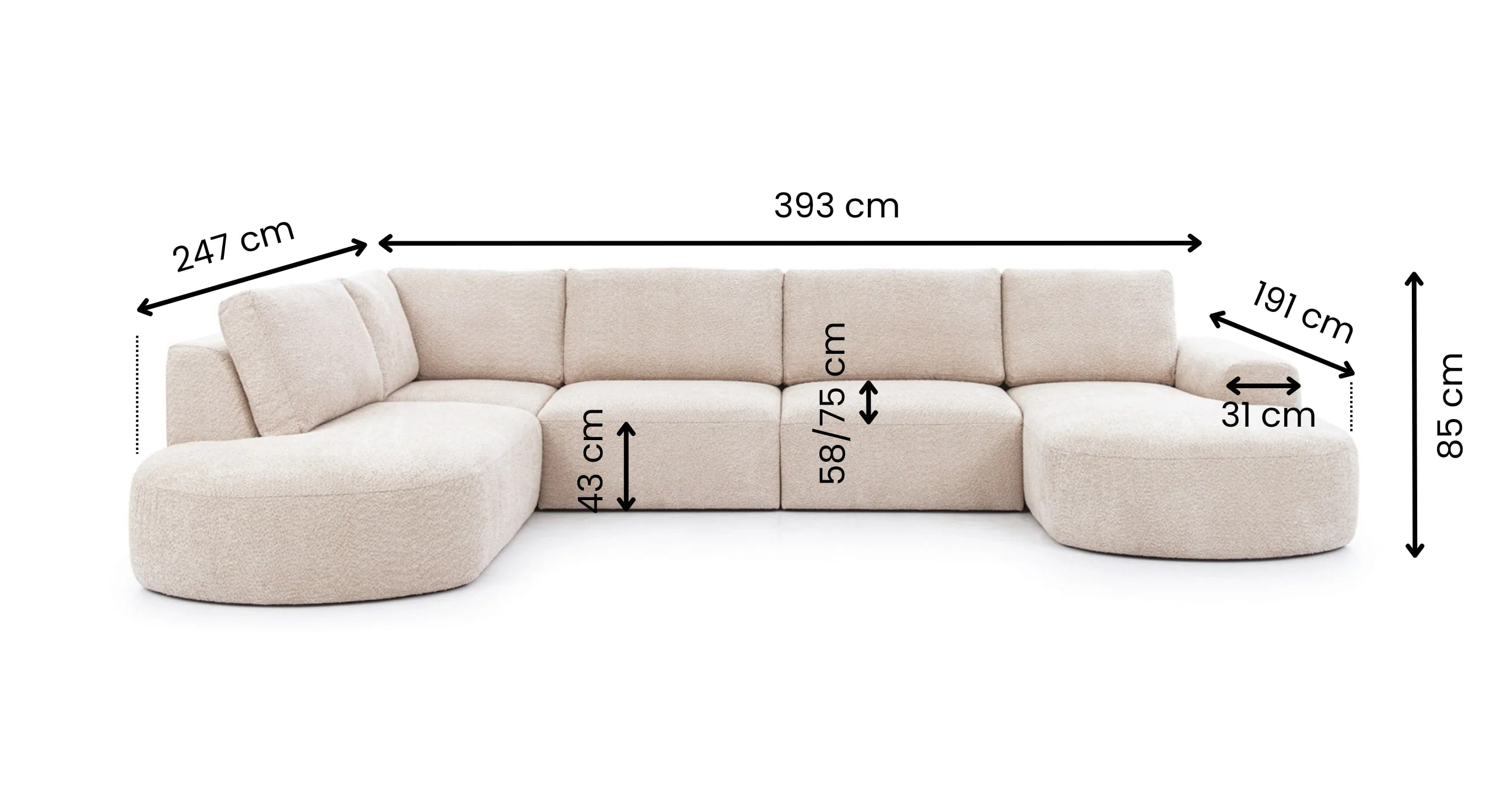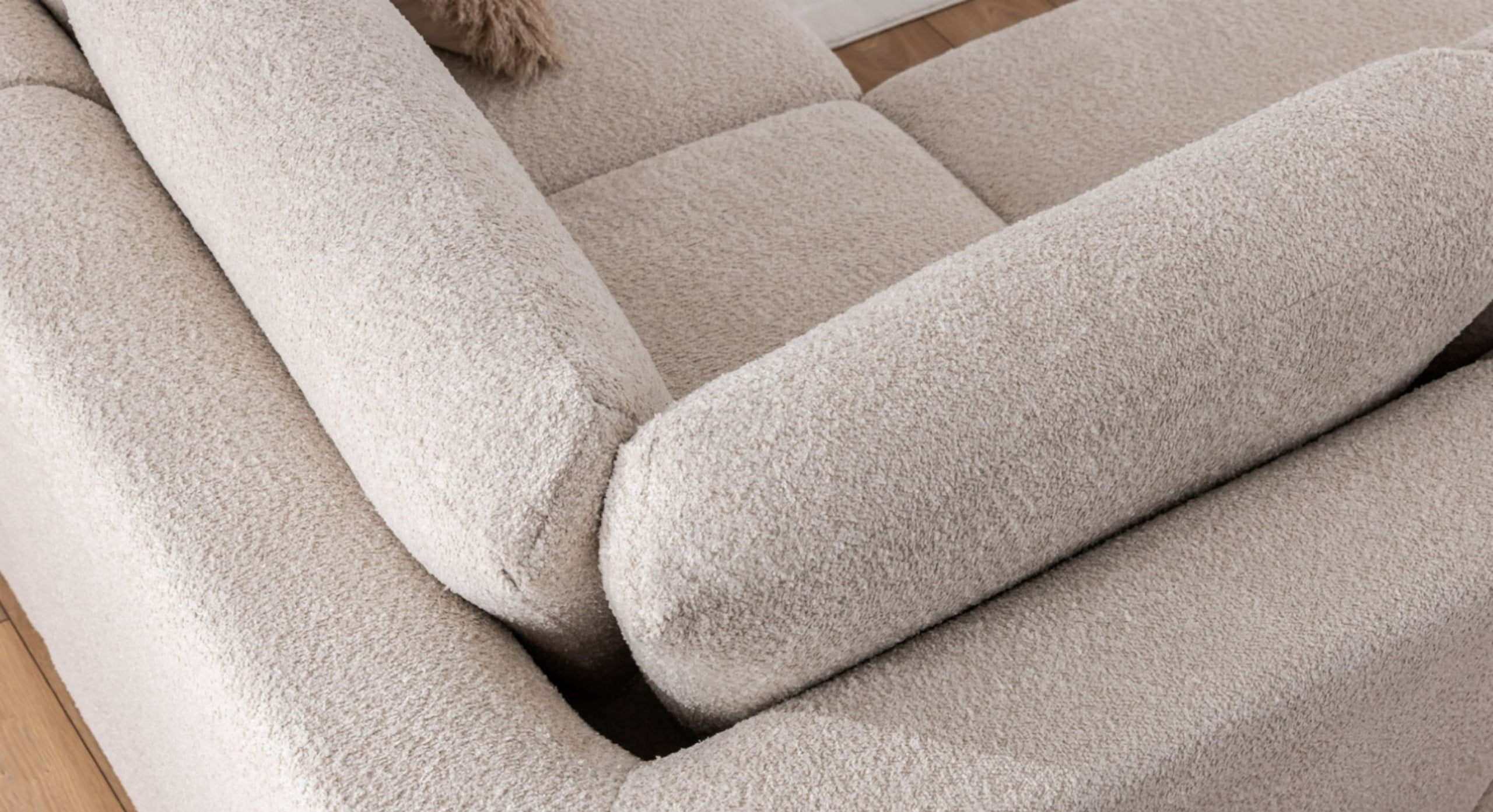 U-bank Snug met Chaise Longue Rechts biedt de ultieme combinatie van ruimte en stijl. De royale chaise longue aan de rechterzijde zorgt voor een luxe zitplek om volledig in te ontspannen, terwijl het ontwerp met hoek en eiland aan de linkerzijde perfect is voor een extra zit- of loungeplek. De bank heeft brede, rondlopende armleuningen en losse rugkussens voor maximaal comfort, aangevuld met stevige vaste zitkussens. De lage pootjes geven de bank een moderne uitstraling die perfect past in elk interieur. Bekleed in een zachte bouclé- of teddy-stof biedt de Snug niet alleen comfort, maar ook een stijlvolle aanvulling op je woonkamer. Bovendien is de U-bank beschikbaar in verschillende trendy stoffen om de look helemaal naar wens aan te passen.